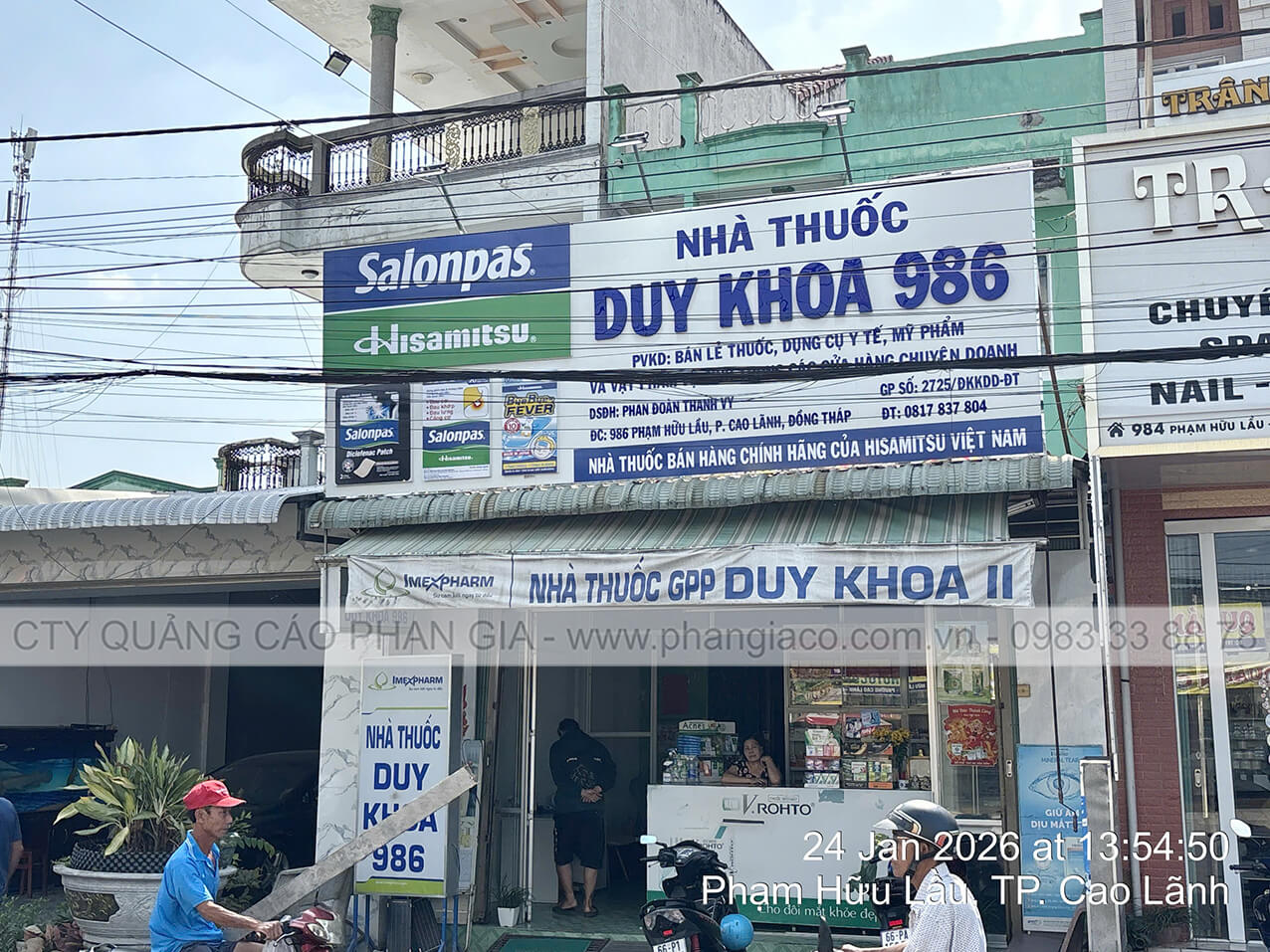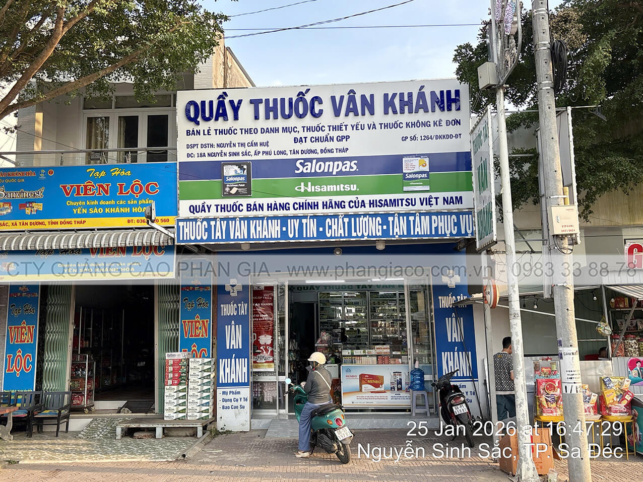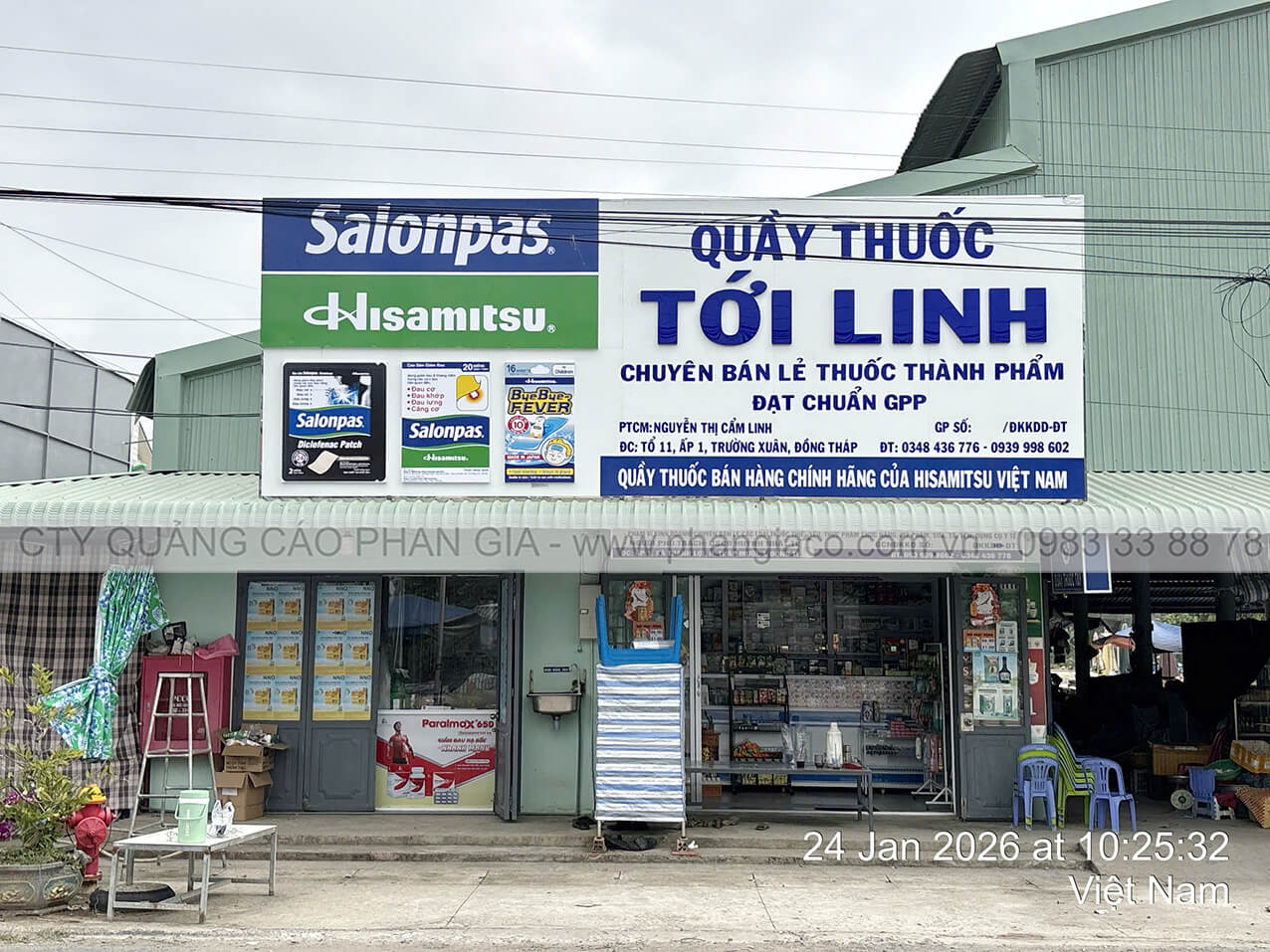 Chuỗi bảng hiệu quảng cáo nhôm với chất liệu khung sắt, nền alu, chữ nổi mica, nội dung in UV trên decal, viền inox hệ thống nhà thuốc tây, quầy thuốc tây được Quảng Cáo Phan Gia khảo sát, thiết kế, sản xuất, vận chuyển và lắp đặt tại các phường xã của tỉnh Đồng Tháp những ngày đầu năm 2026.
