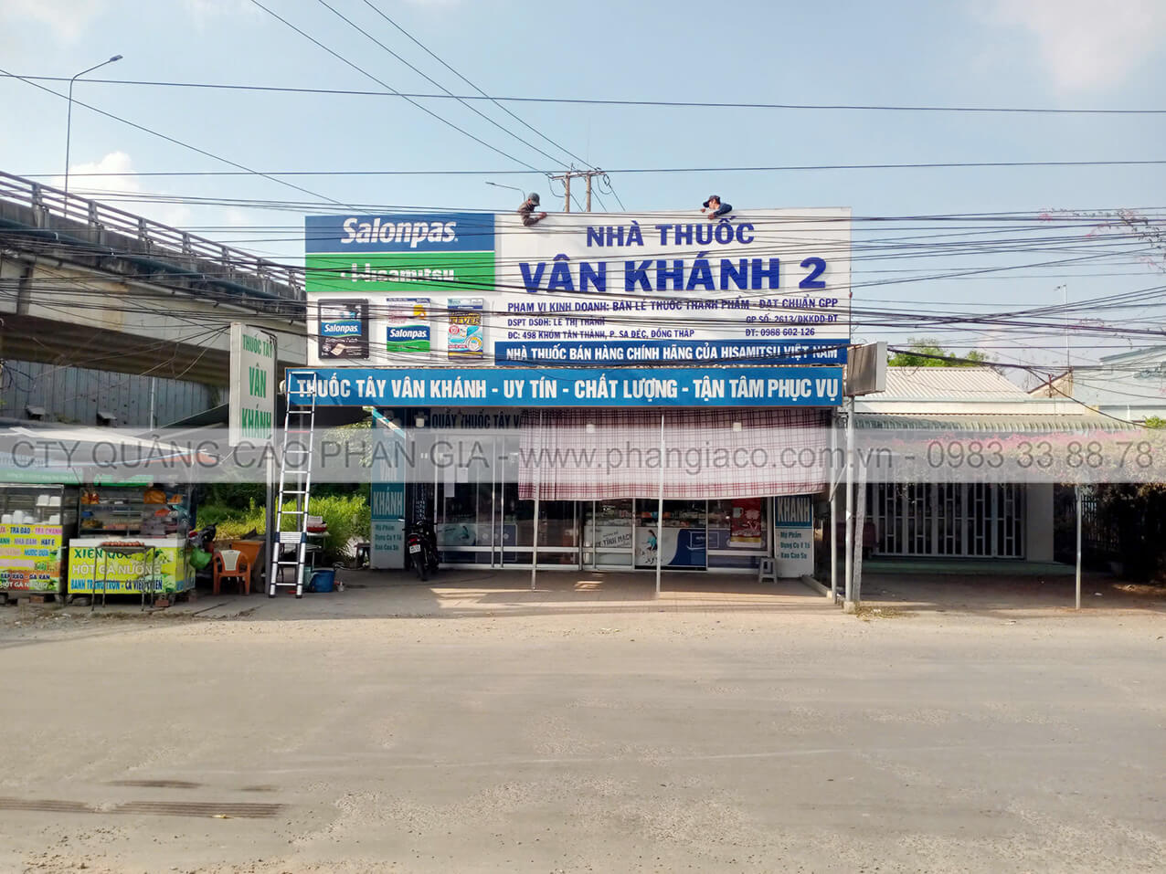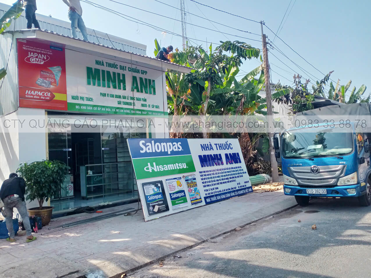 Bảng hiệu alu nhà thuốc đẹp nổi bật năm 2026 được anh em thợ Phan Gia lắp đặt hoàn thiện và bàn giao cho cửa hàng đưa vào sử dụng tại P. Sa Đéc, Đồng Tháp