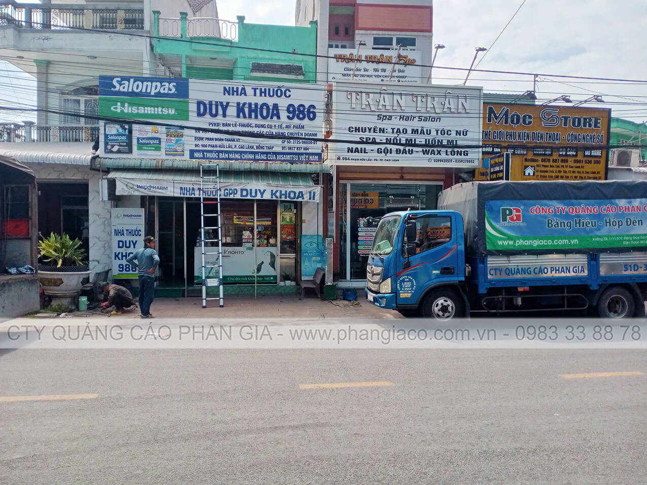 Hình ảnh lắp đặt bảng hiệu alu được thợ thi công Phan Gia thực hiện tại P. Sa Đéc, Đồng Tháp