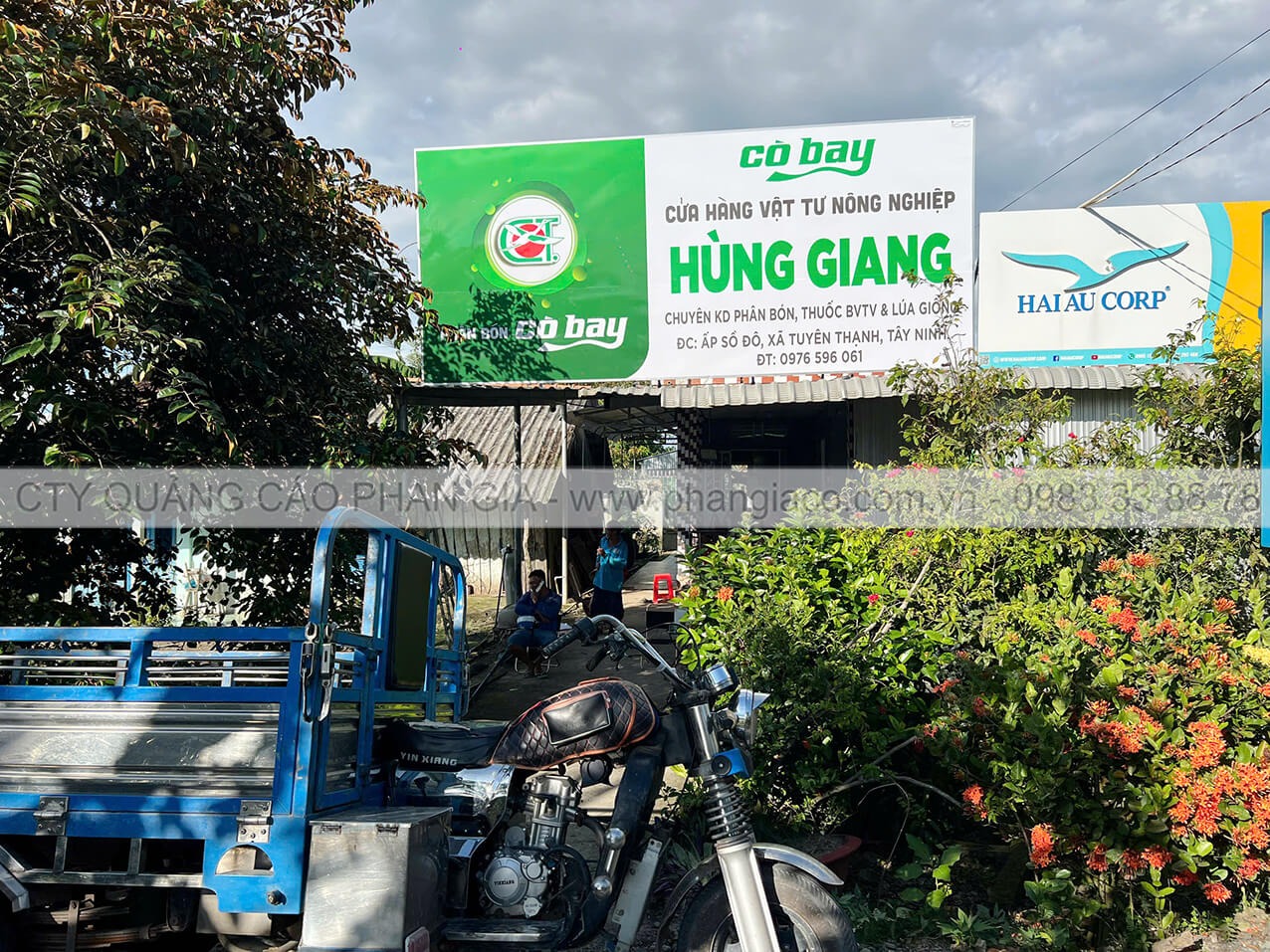 Bảng hiệu quảng cáo tôn decal vật tư nông nghiệp lắp đặt tại xã Tuyên Thạnh, Tây Ninh (Kiến Tường, Long An cũ) - bảng lắp đặt mặt tiền mái nhà đại lý