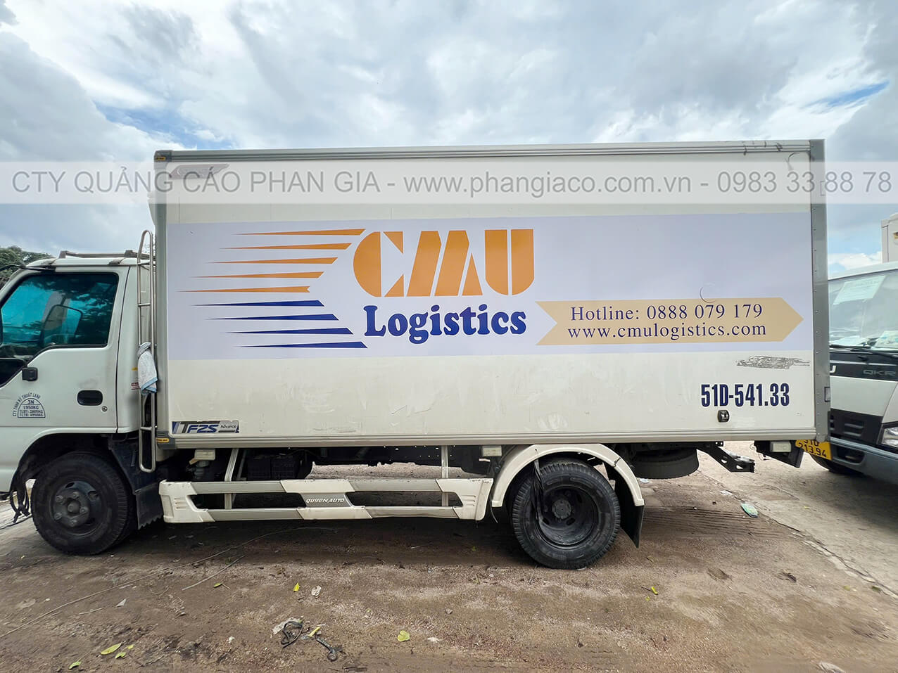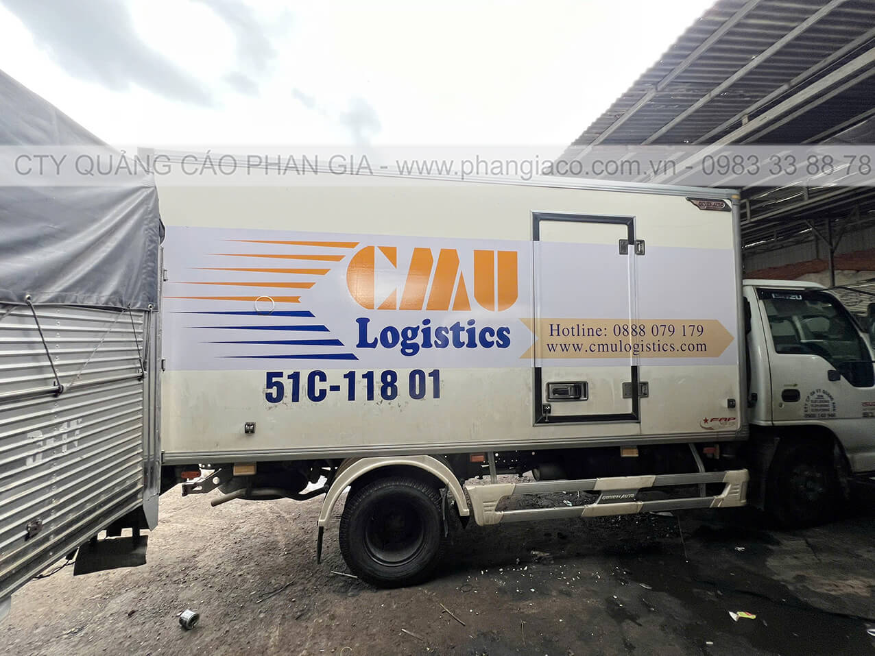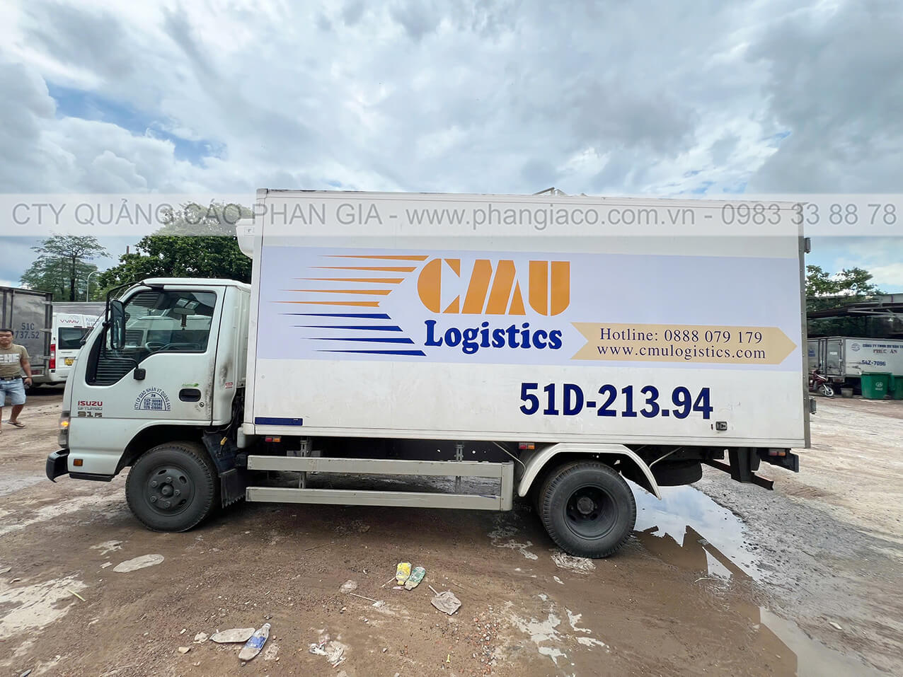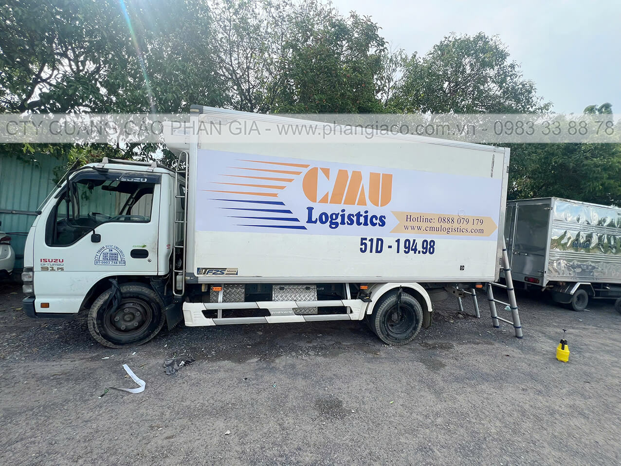 Thi công dán decal quảng cáo thùng xe tải nặng, loại thùng phẳng
