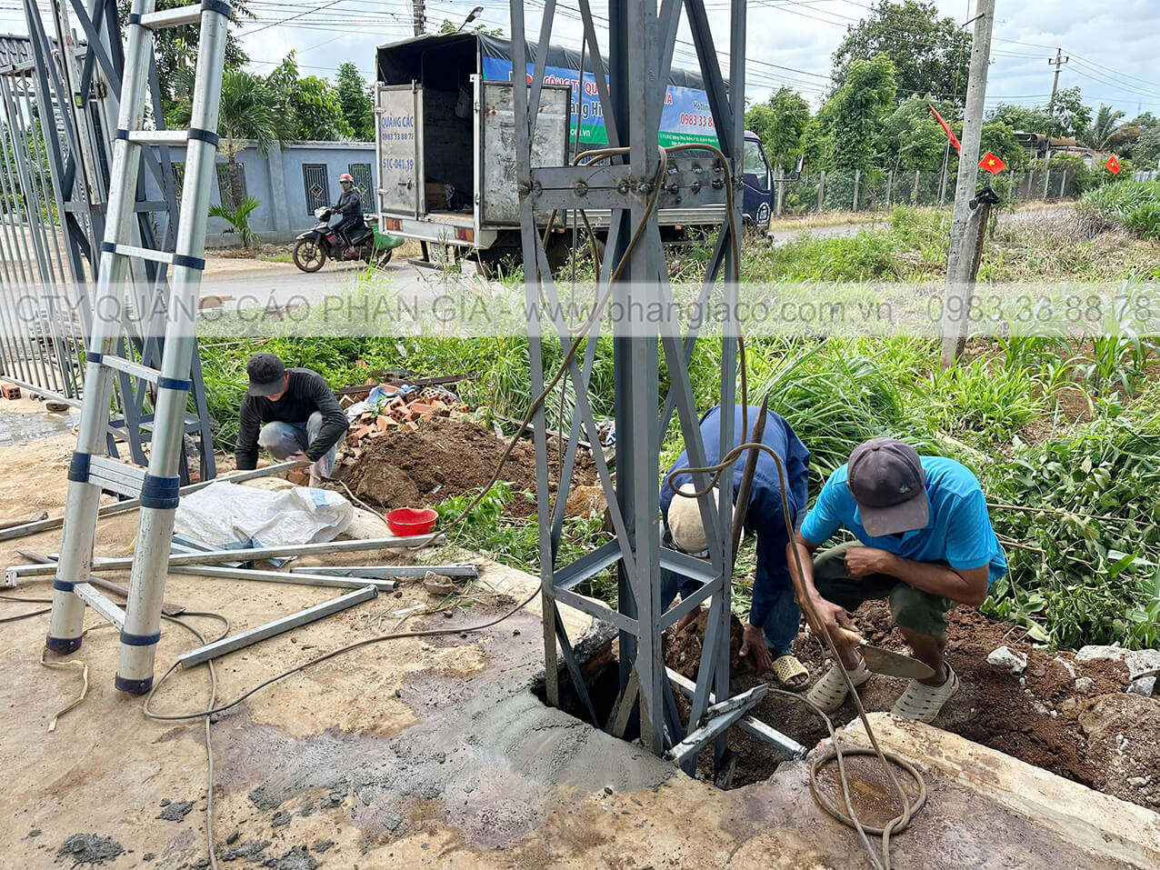 Phân công chia việc cho mỗi anh em thợ nhiệm vụ nhằm bảo đảm tiến độ được đề ra; hàn nối gia cố trụ V40 lại với nhau, sơn chống sét lại các chỗ trầy xướt trong quá trình vận chuyển từ xưởng Phan Gia lên cửa hàng