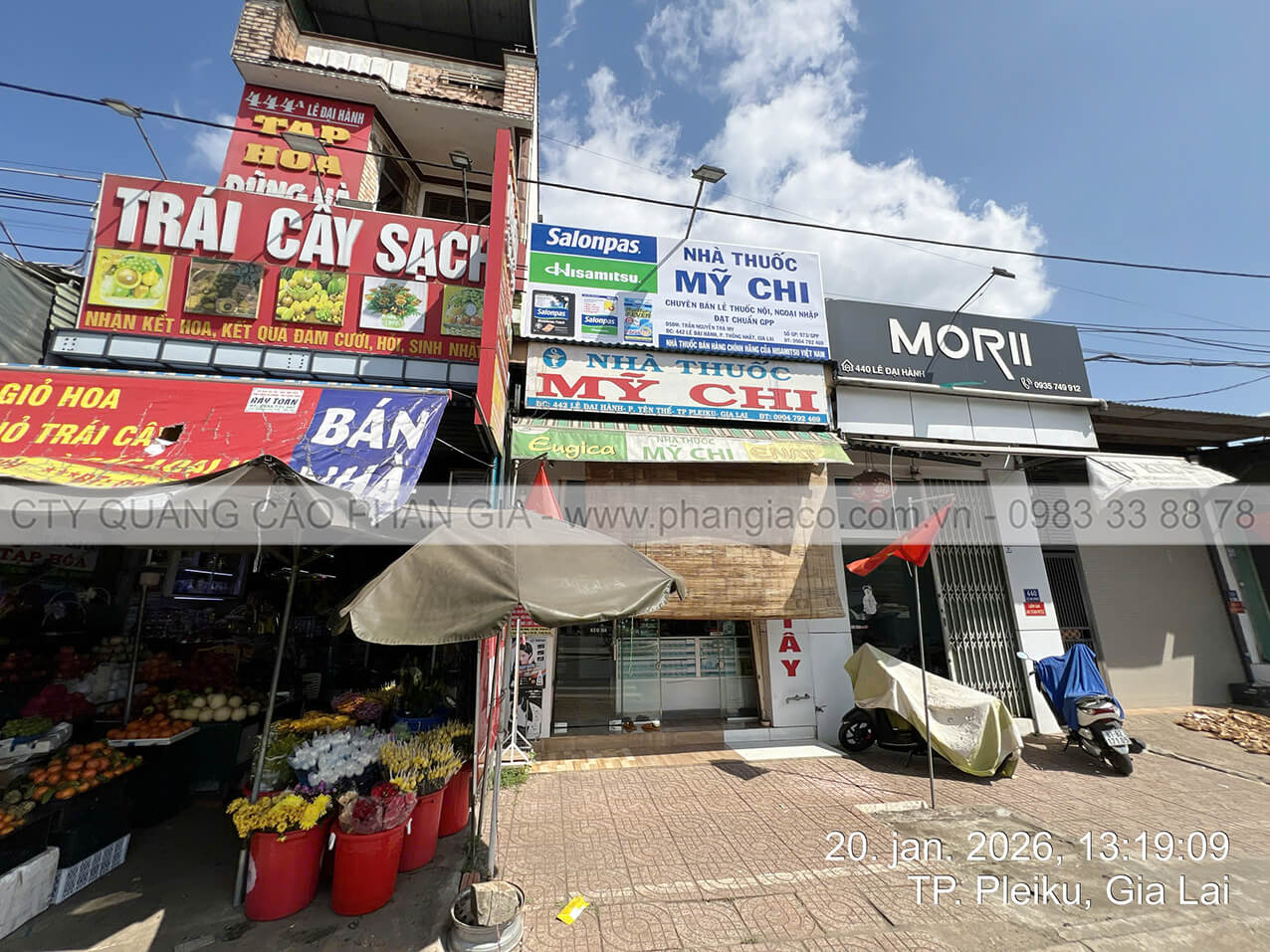 Hình ảnh thực tế bảng hiệu quảng cáo tôn decal được sản xuất hoàn thiện tại xưởng sản xuất Phan Gia vận chuyển đến cửa hàng lắp đặt