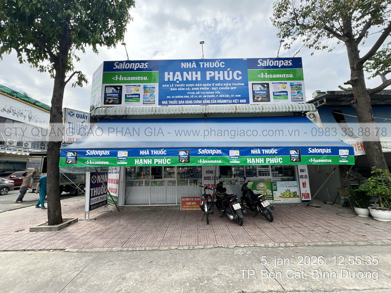 Một số hình ảnh thi công & lắp đặt hoàn thiện chuỗi bảng hiệu quảng cáo tôn decal Phan Gia đã thực hiện cho khách hàng minh chứng năng lực của Phan Gia