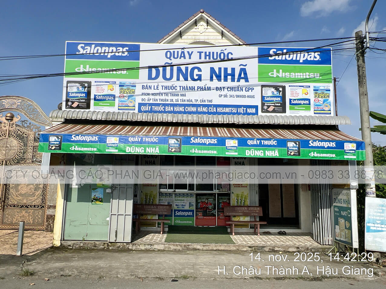 Chuỗi bảng hiệu quảng cáo tôn decal quầy thuốc tây lắp đặt tại tỉnh Hậu Giang