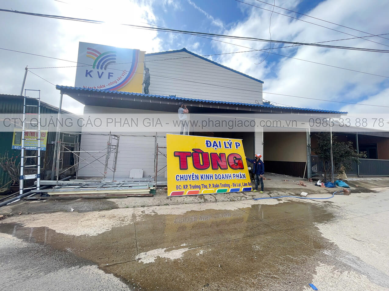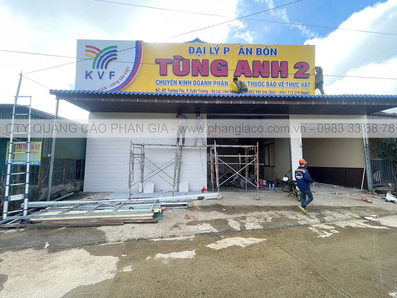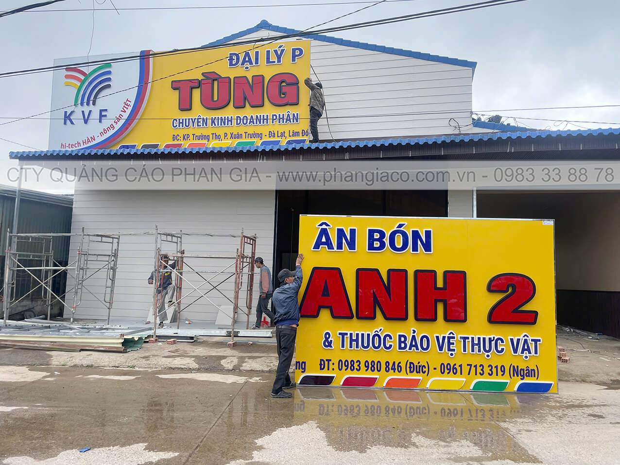 Bảng hiệu alu đại lý phân bón được thợ thi công Phan Gia lắp đặt hoàn thiện, nghiệm thu và bàn giao cho đại lý đưa vào sử dụng tại Đà Lạt, Lâm Đồng