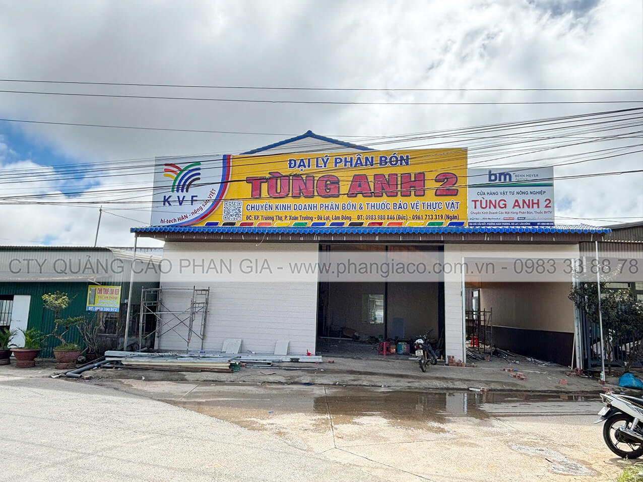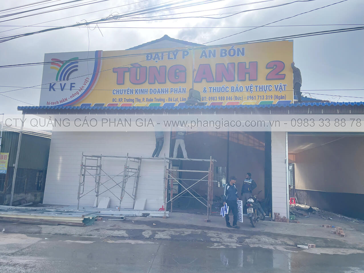 Bảng hiệu quảng cáo đại lý phân bón Tùng Anh 2 với quy cách bảng nhôm chữ nổi mica được quảng cáo Phan Gia sản xuất & lắp đặt hoàn thiện tại P. Xuân Trường - Đà Lạt, Lâm Đồng.