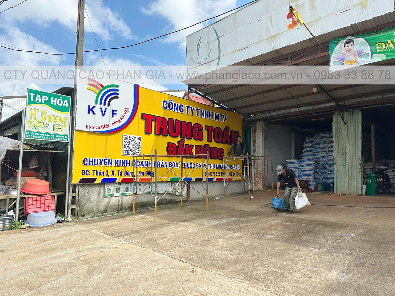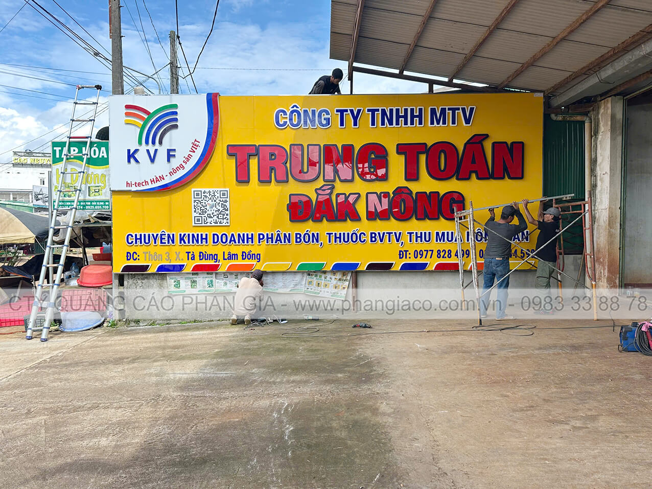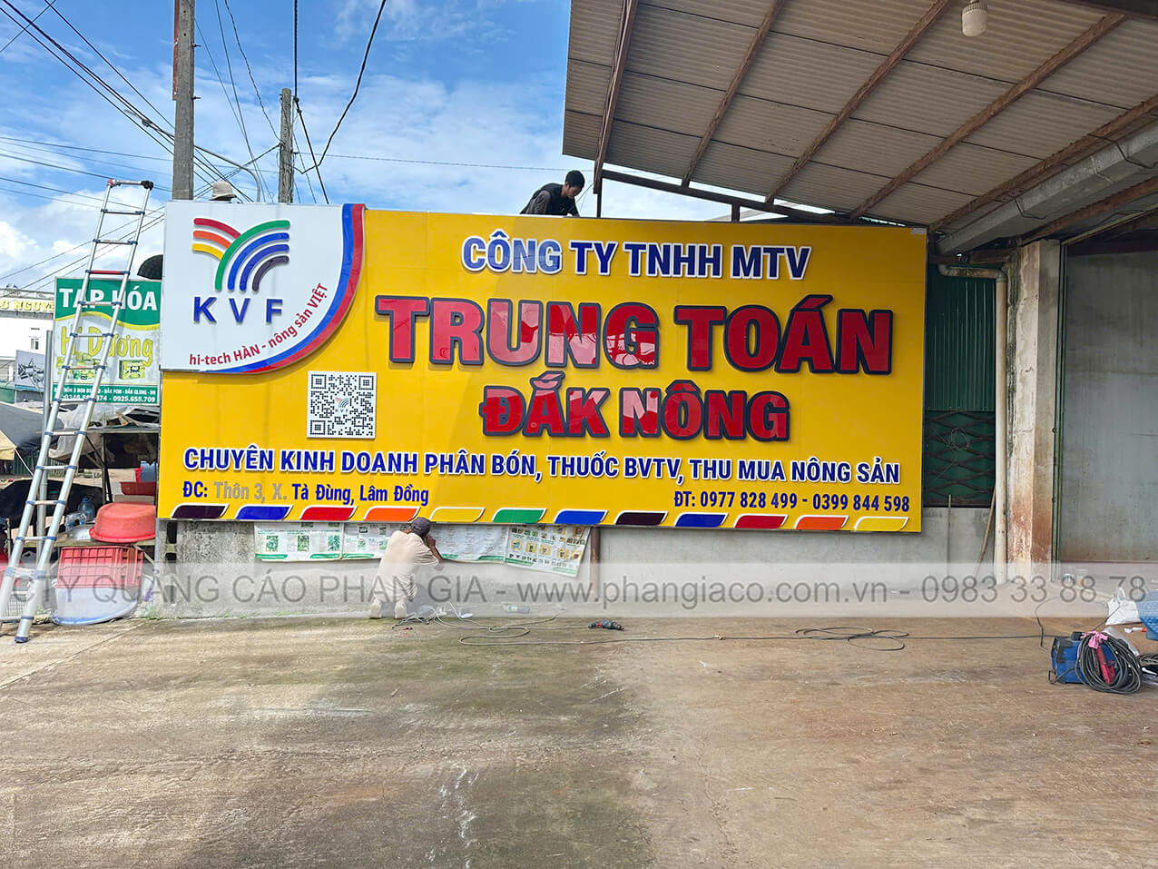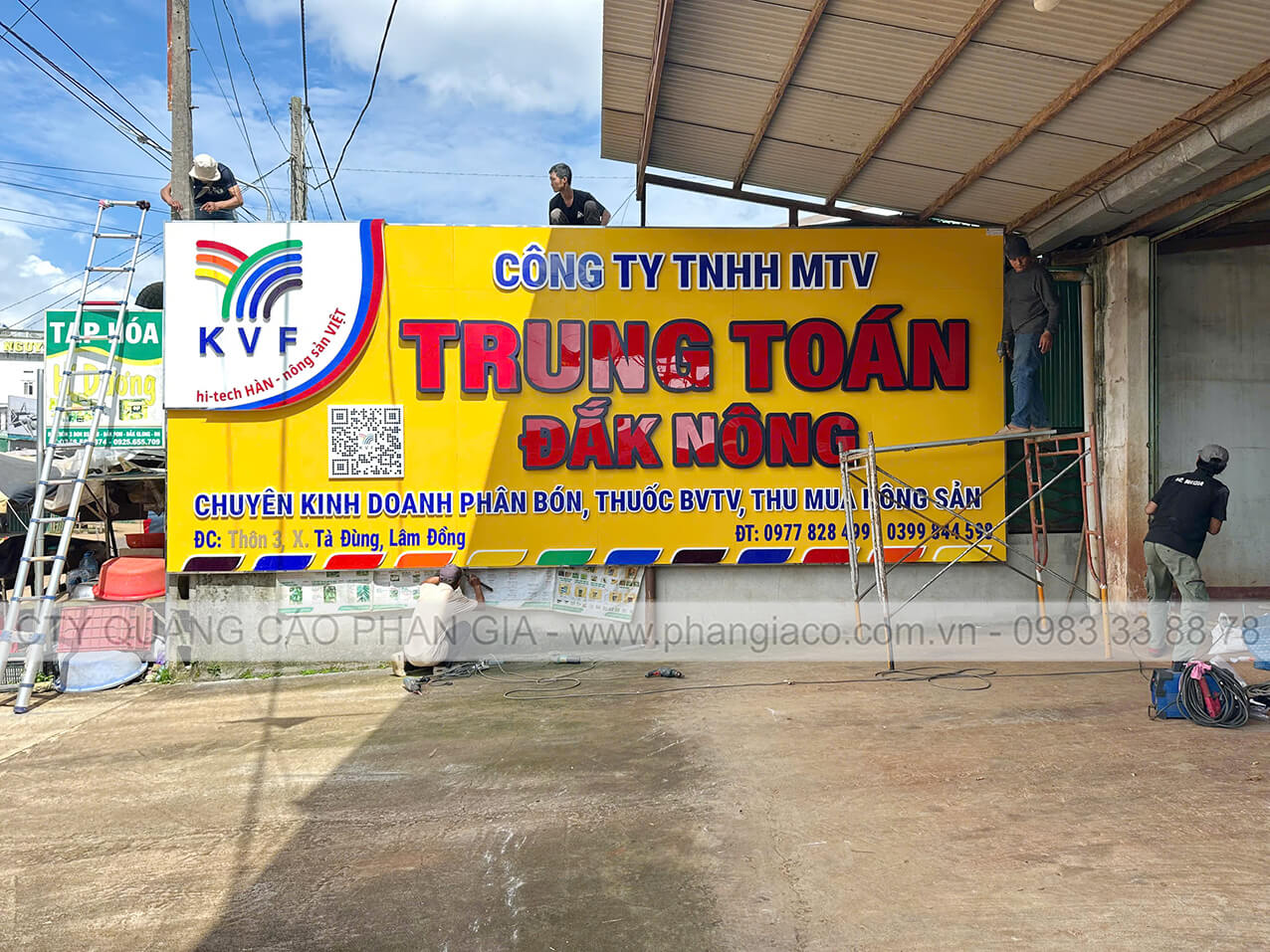 Bảng hiệu alu nhà phân phối phân bón được anh em thợ Phan Gia lắp đặt hoàn thiện và bàn giao cho nhà phân phối đưa vào sử dụng tại Lâm Đồng