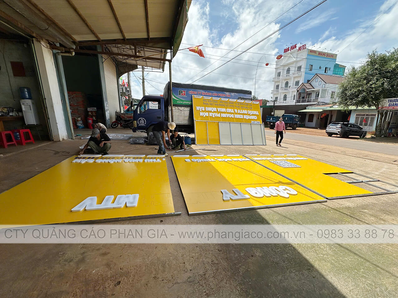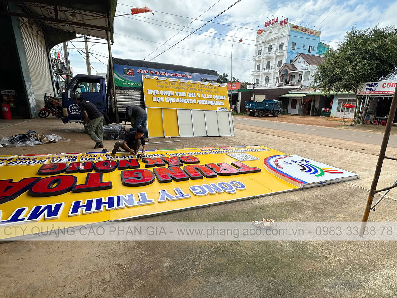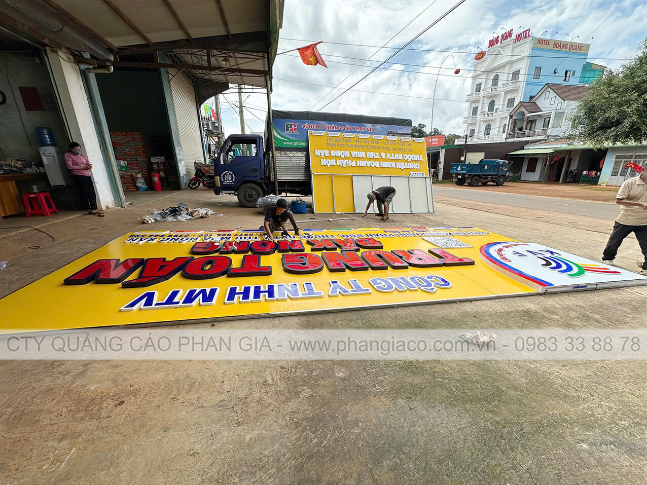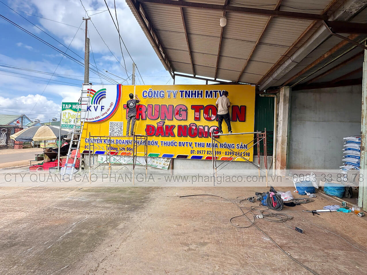 Bảng hiệu alu nhà phân phối phân bón được anh em thợ Phan Gia lắp đặt hoàn thiện và bàn giao cho nhà phân phối đưa vào sử dụng tại Lâm Đồng