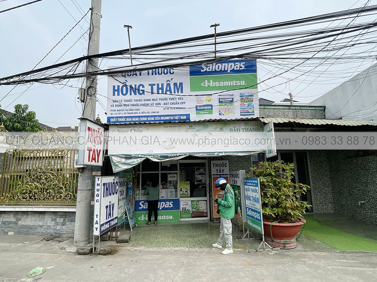 Bảng quảng cáo tôn dán decal nhà thuốc tại P. Long Mỹ, TP. Cần Thơ (thị xã Long Mỹ, Hậu Giang cũ) sản xuất hoàn thiện tại xưởng Phan Gia