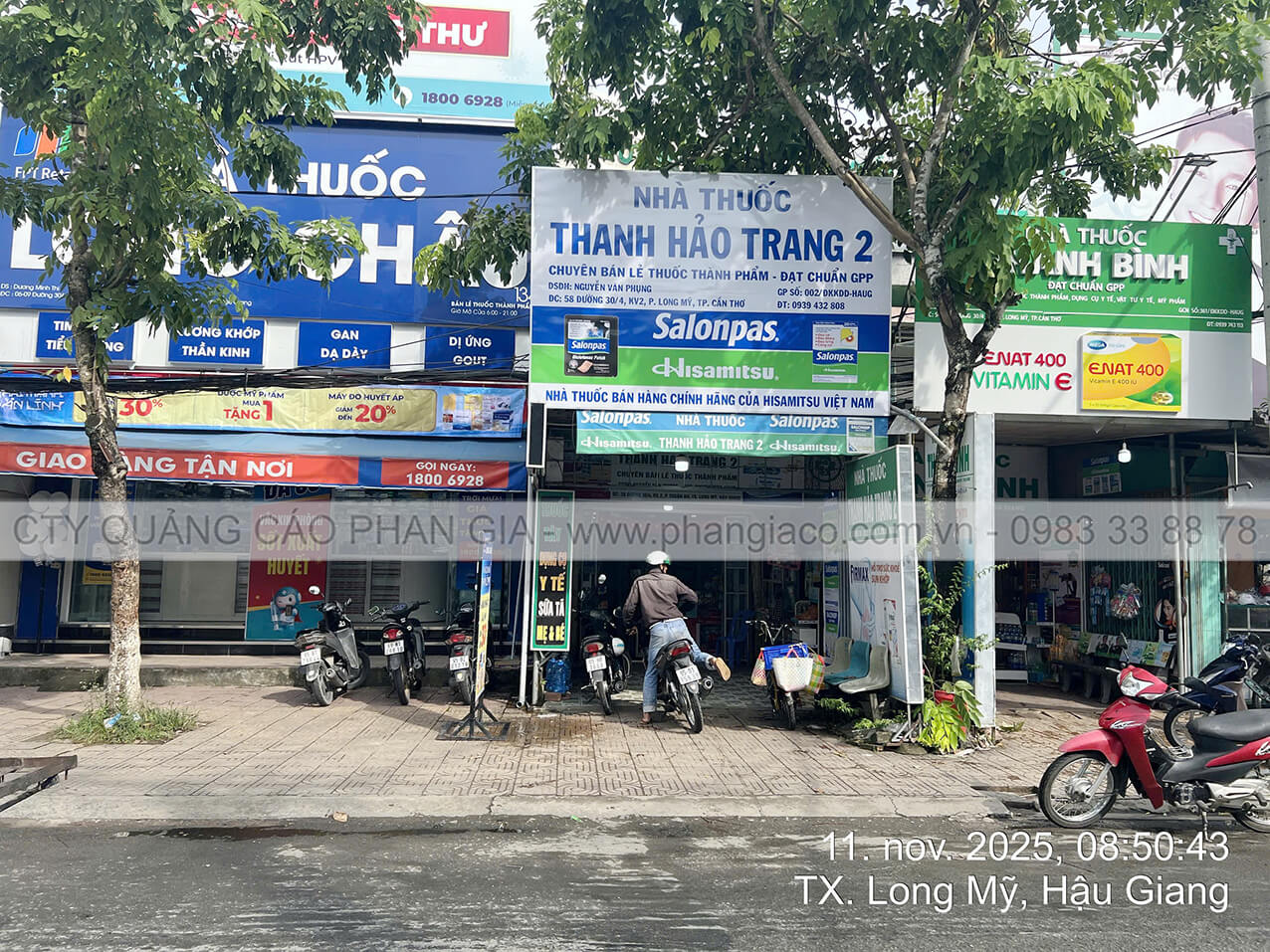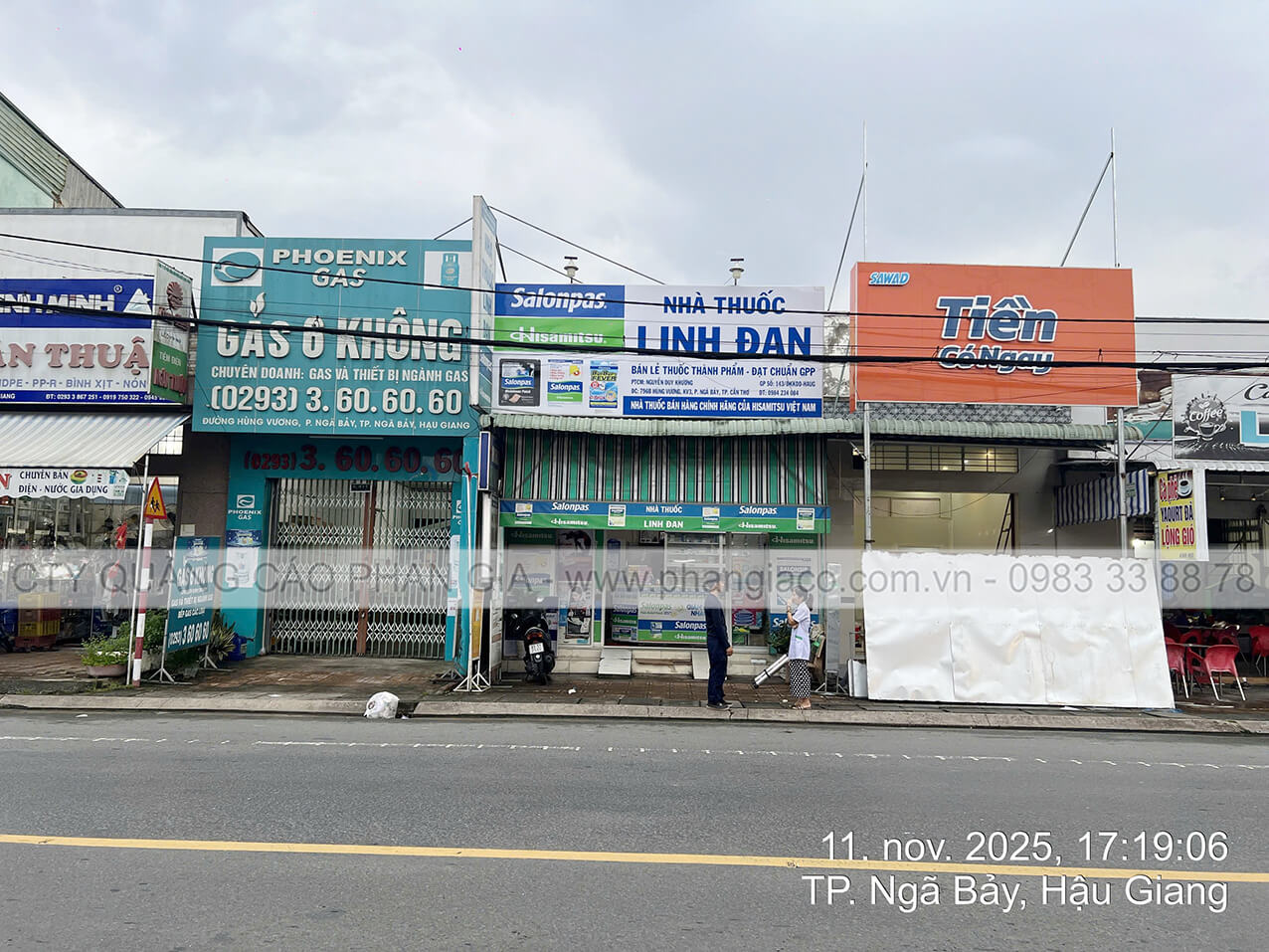 Chuỗi bảng hiệu quảng cáo với quy cách bảng quảng cáo tôn dán decal và chuỗi hộp đèn quảng cáo với chất liệu hiflex in UV được Quảng Cáo Phan Gia khảo sát, thiết kế, sản xuất, vận chuyển và lắp đặt tại các thành phố và huyện của tỉnh Hậu Giang (nay thuộc TP. Cần Thơ) tháng 11/2025. Một số hình ảnh tiêu biểu chuỗi bảng hiệu hộp đèn minh chứng năng lực sản xuất & lắp đặt của Phan Gia.