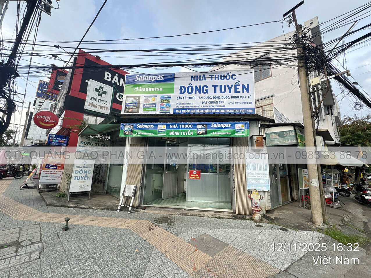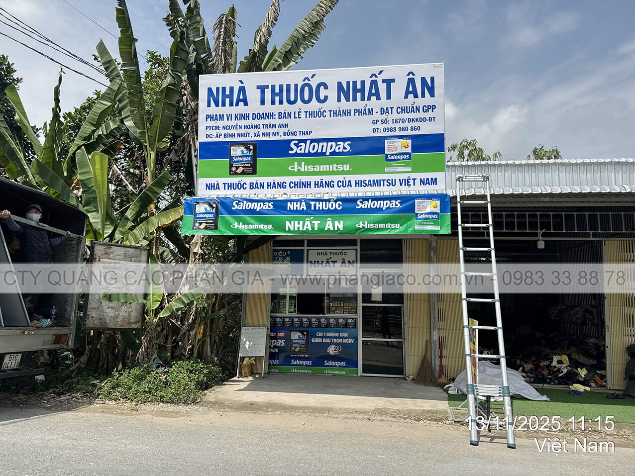 Bảng hiệu tôn decal được anh em thợ Phan Gia lắp đặt hoàn thiện, bàn giao cho nhà thuốc đưa vào sử dụng tại P. Ngã Bảy, TP. Cần Thơ (tỉnh Hậu Giang cũ)