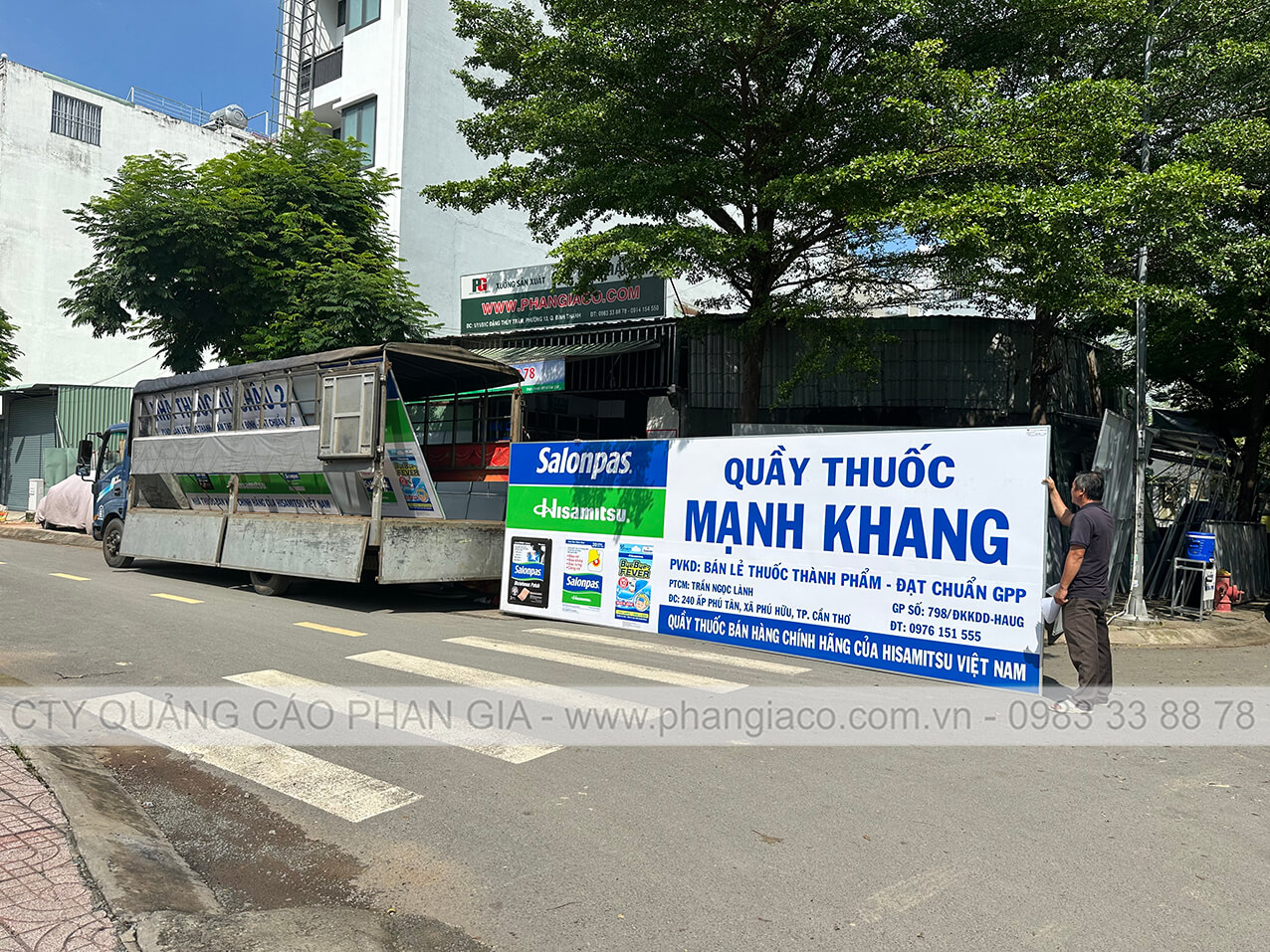 Bảng quảng cáo tôn dán decal Phan Gia lắp đặt tại xã Tân Phước Hưng, TP. Cần Thơ (huyện Phụng Hiệp, Hậu Giang cũ)