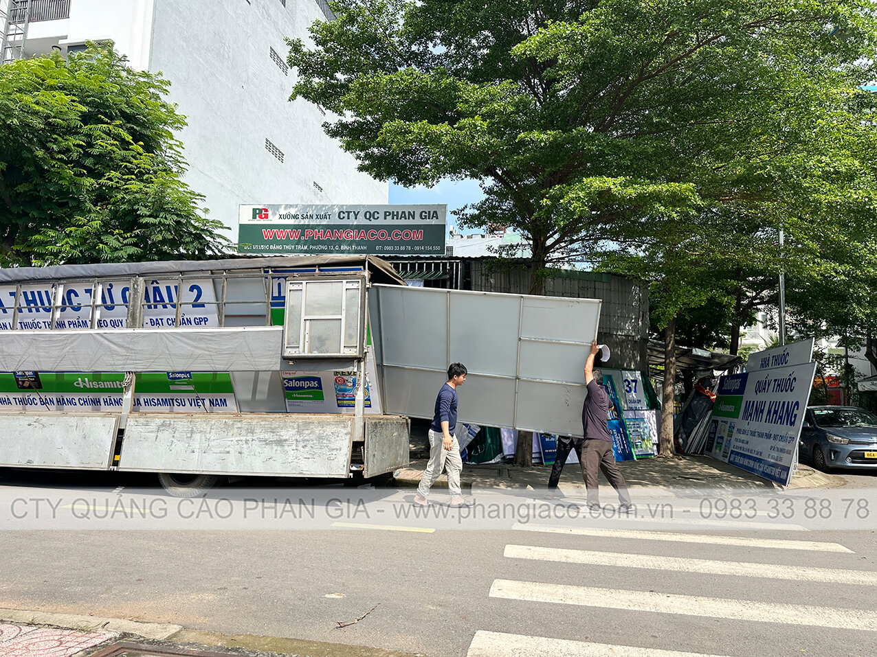Bảng hiệu quảng cáo tôn decal tất cả đều được Phan Gia gia công, sản xuất hoàn thiện tại xưởng
