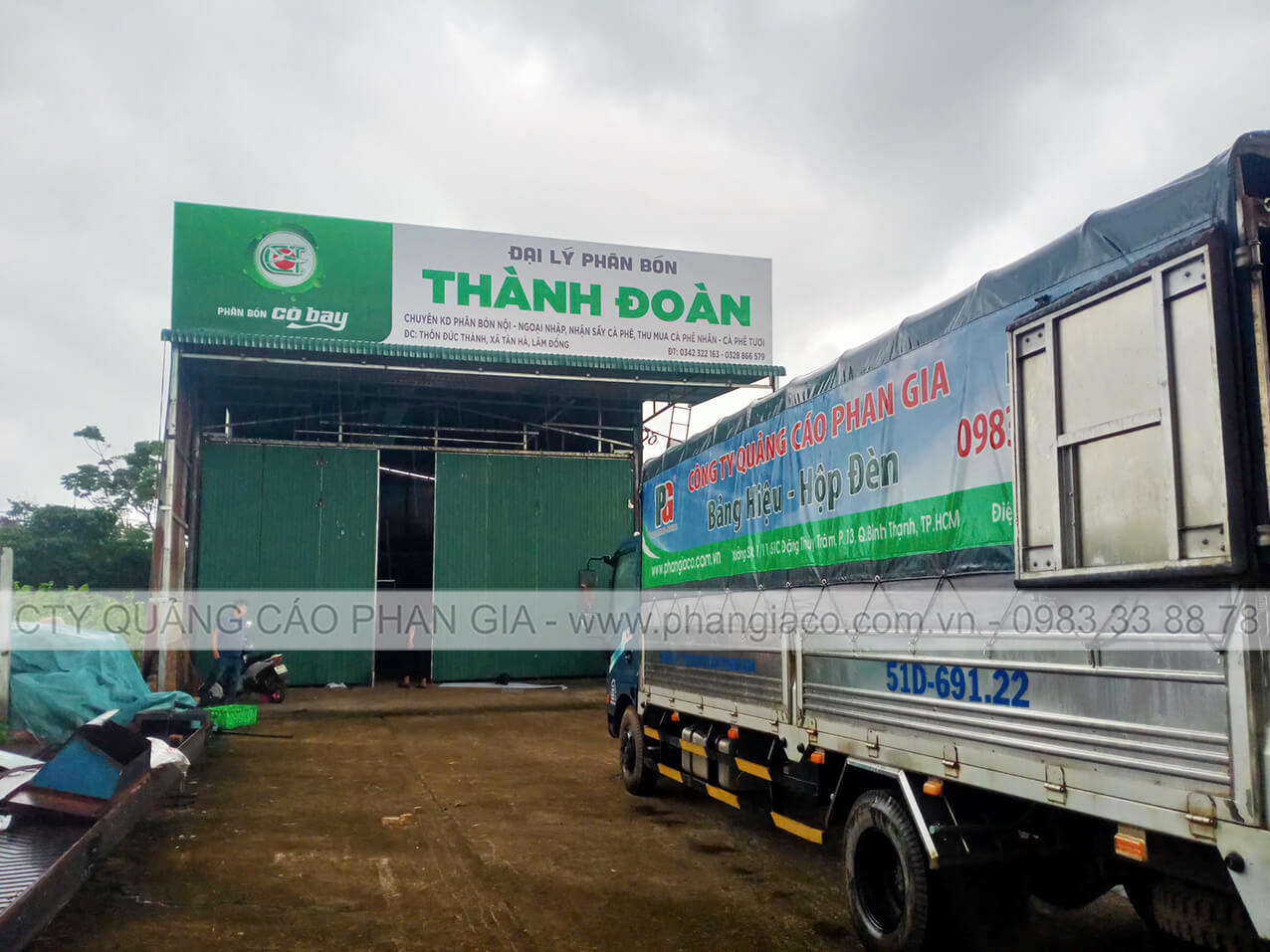 Bảng hiệu tôn dán decal đại lý phân bón lắp đặt tại xã Tân Hà, Lâm Đồng