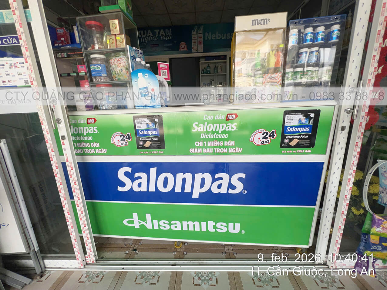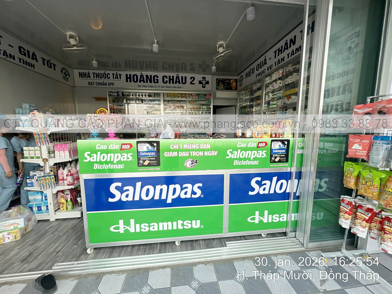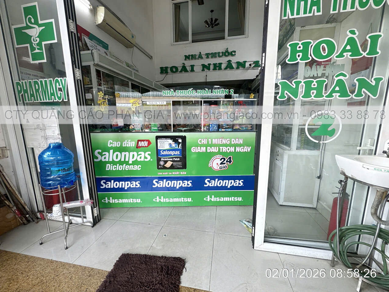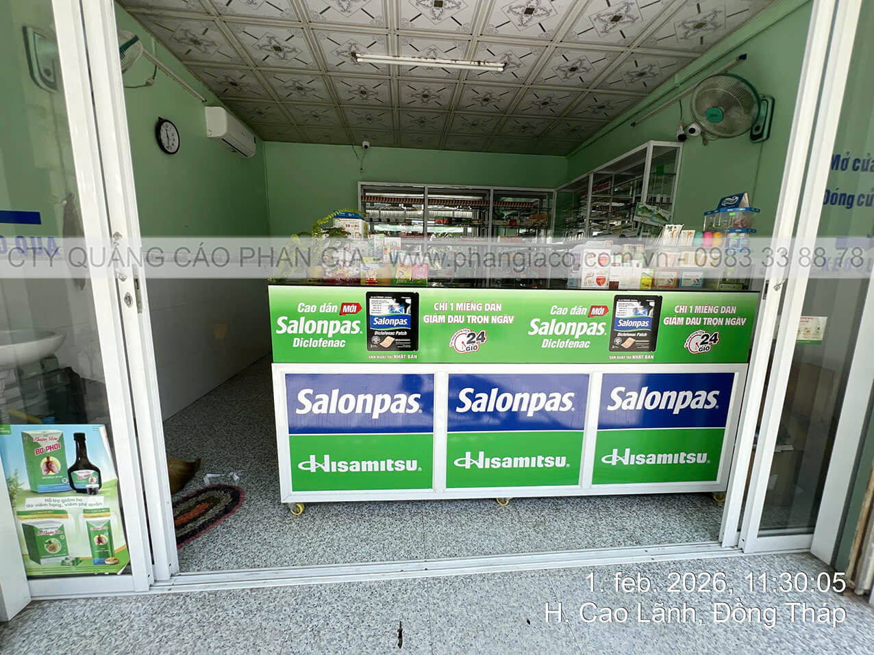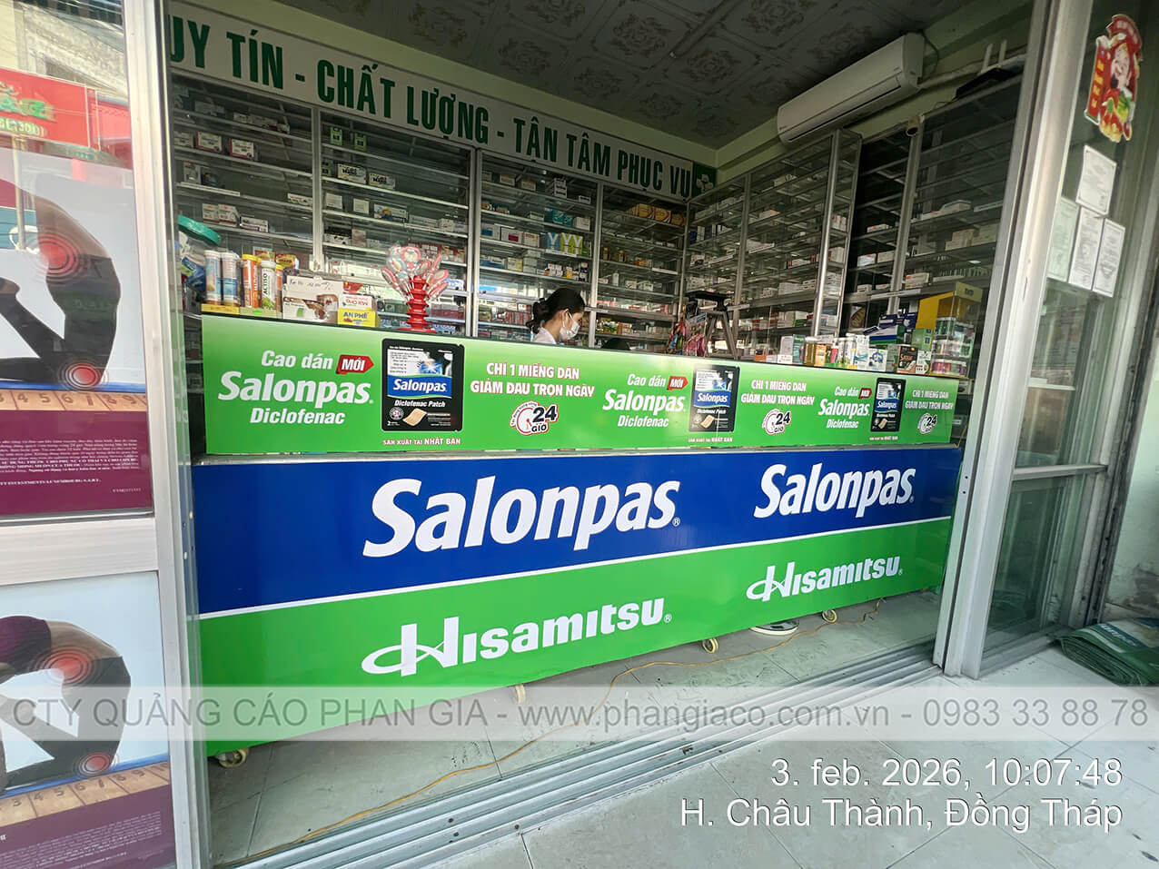Quảng Cáo Phan Gia, nhà cung cấp in ấn và thi công dán decal quảng cáo tủ thuốc tây uy tín - chuyên nghiệp cho các công ty dược phẩm, hãng dược phẩm có nhu cầu dán quảng cáo sản logo thương hiệu sản phẩm tại chuỗi hệ thống nhà thuốc tây, quầy thuốc tây, hiệu thuốc tây. Một số hình ảnh thi công thực tế Phan Gia đã và đang là nhà cung cấp uy tín lâu năm cho hãng dược phẩm đến từ Nhật Bản - Salonpas Hitsamitsu.