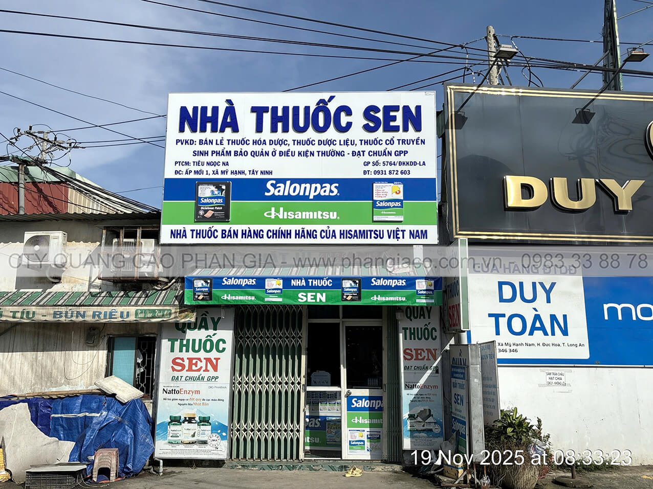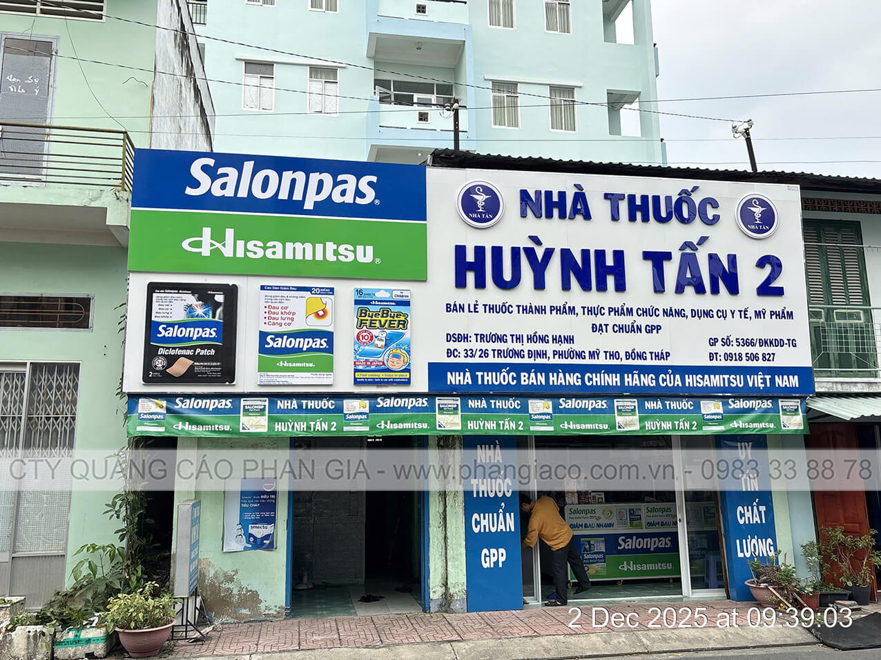 Bảng hiệu quảng cáo nhôm nhà thuốc đẹp chất lượng được Phan Gia lắp đặt hoàn thiện và bàn giao cho khách hàng đưa vào sử dụng tại TP. Mỹ Tho