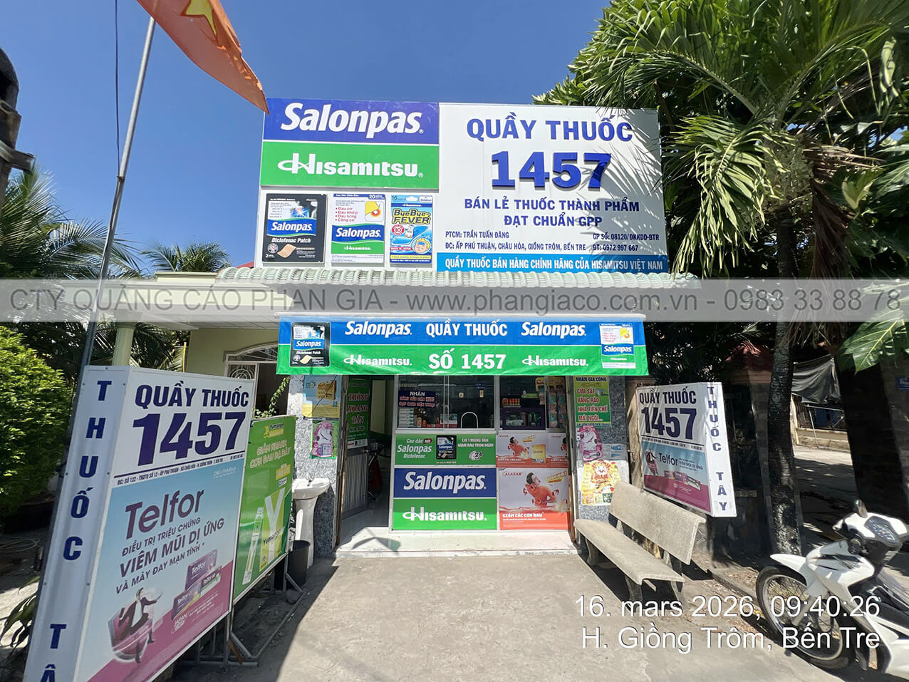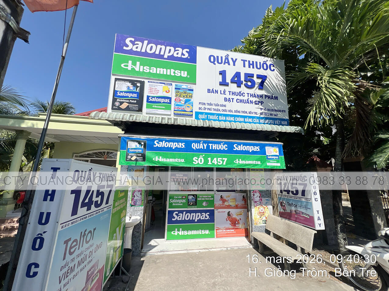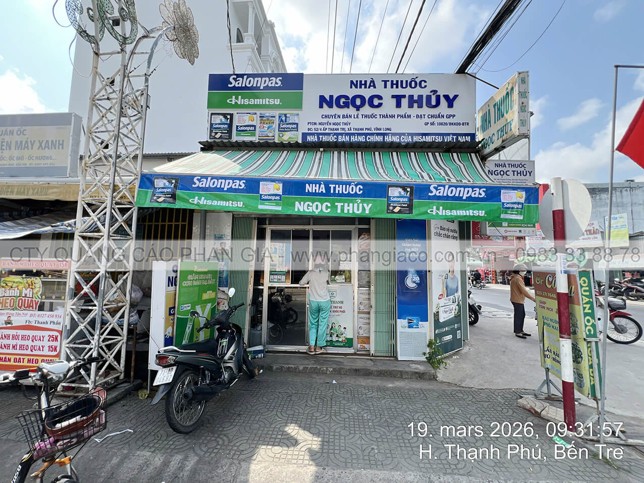 Lắp đặt bảng quảng cáo nhôm chữ nổi mica, treo bèo mái hiên di động tại huyện Thạnh Phú, Bến Tre (nay thuộc tỉnh Vĩnh Long)