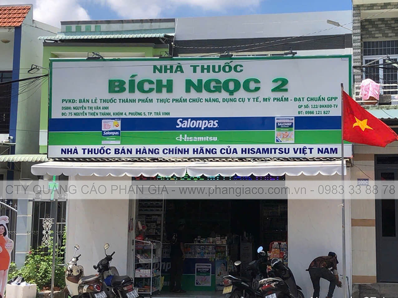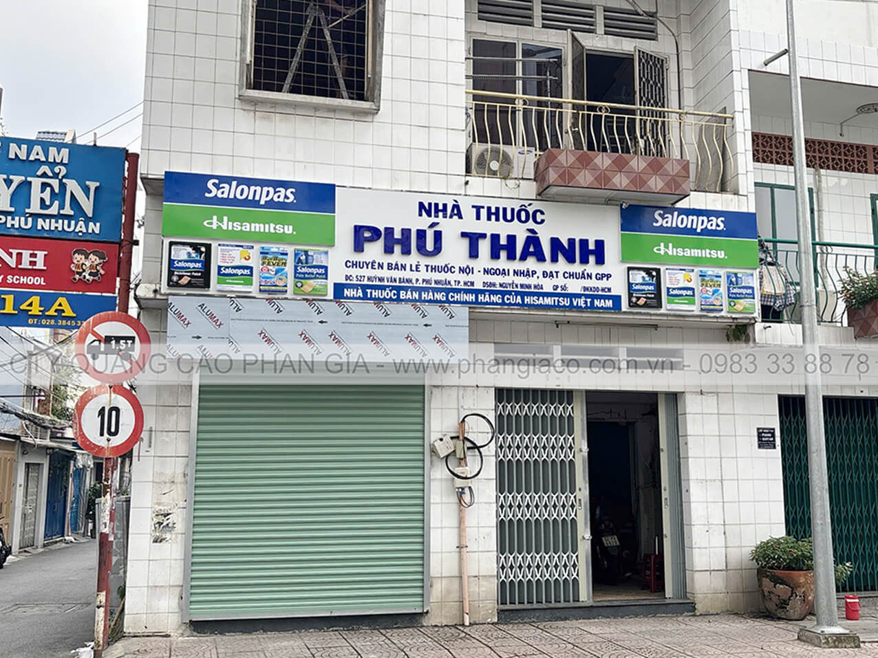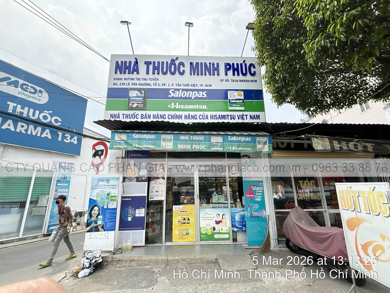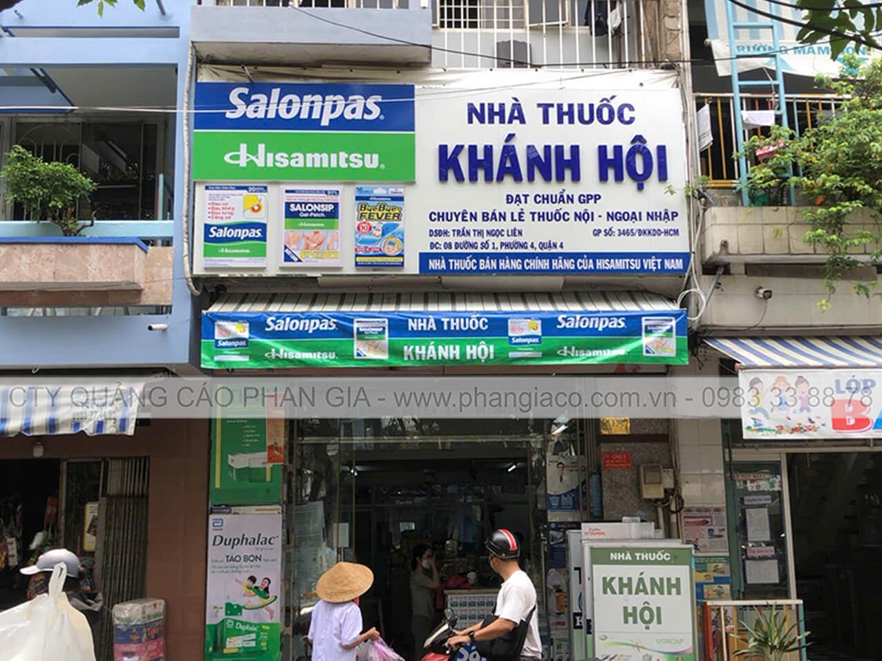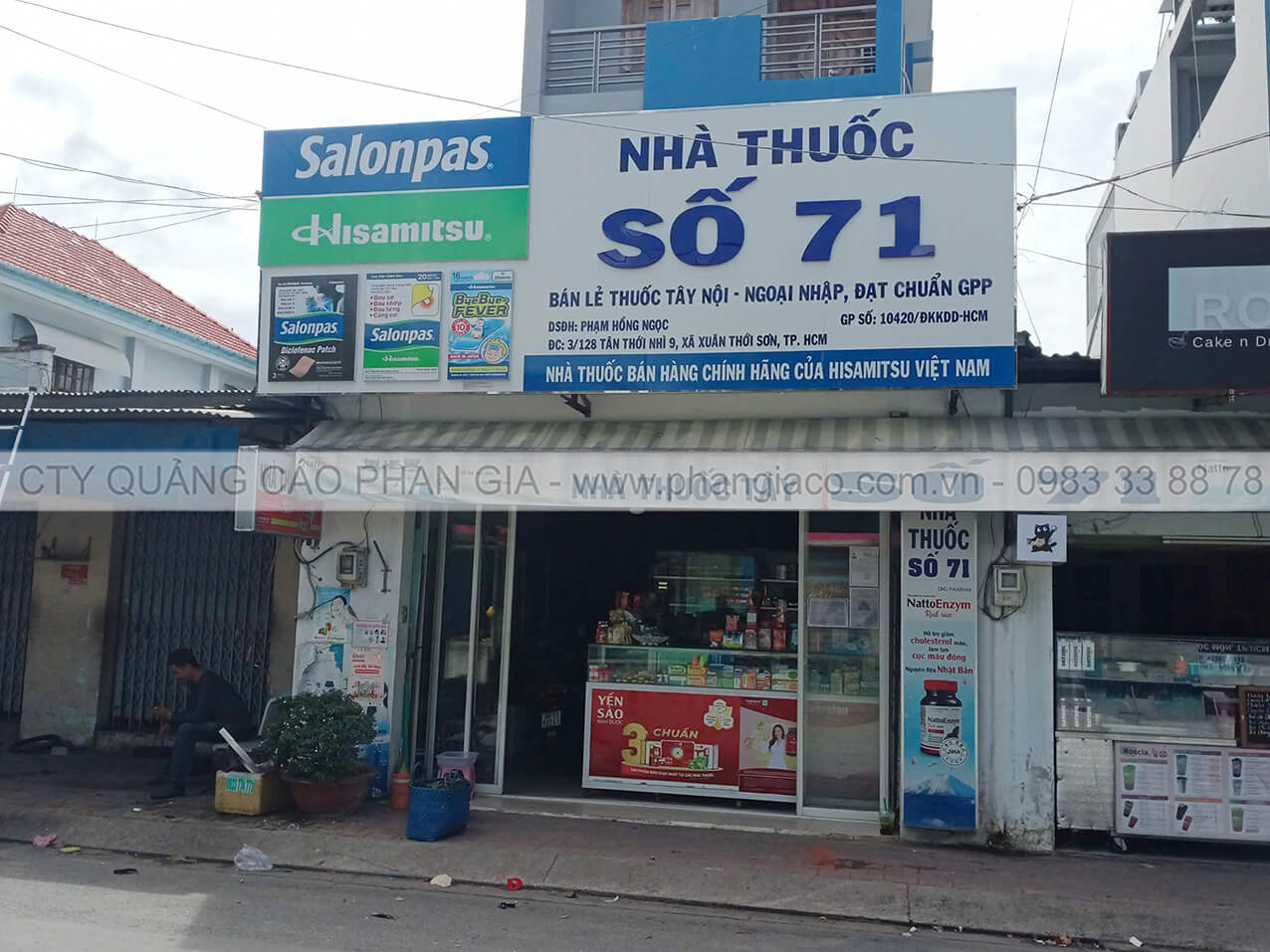 Lắp đặt hoàn thiện các hạng mục quảng cáo cho nhà thuốc tây khu vực TP. Hồ Chí Minh: bảng hiệu alu, hộp đèn hiflex, top-board, băng rôn, dán decal tủ thuốc....