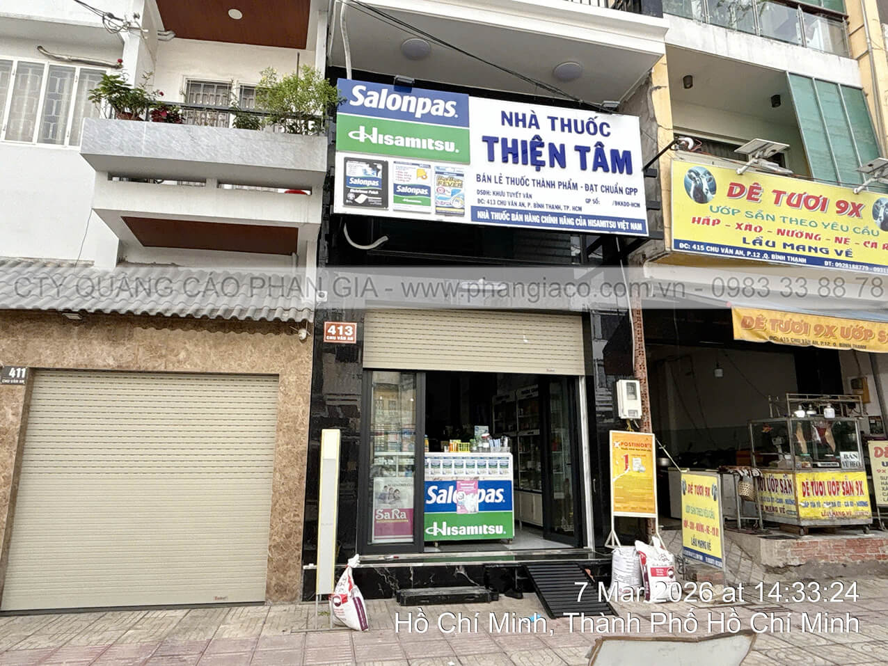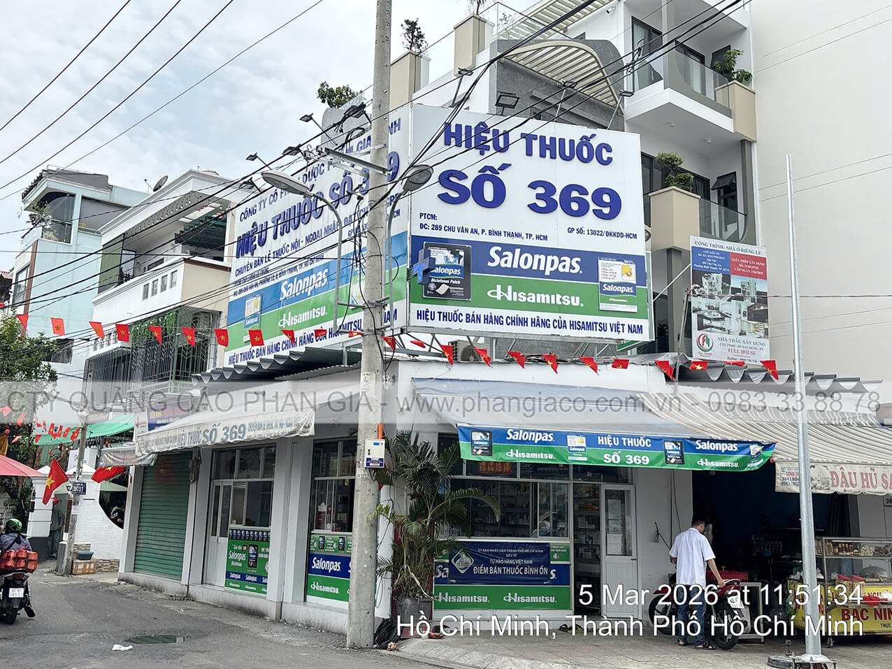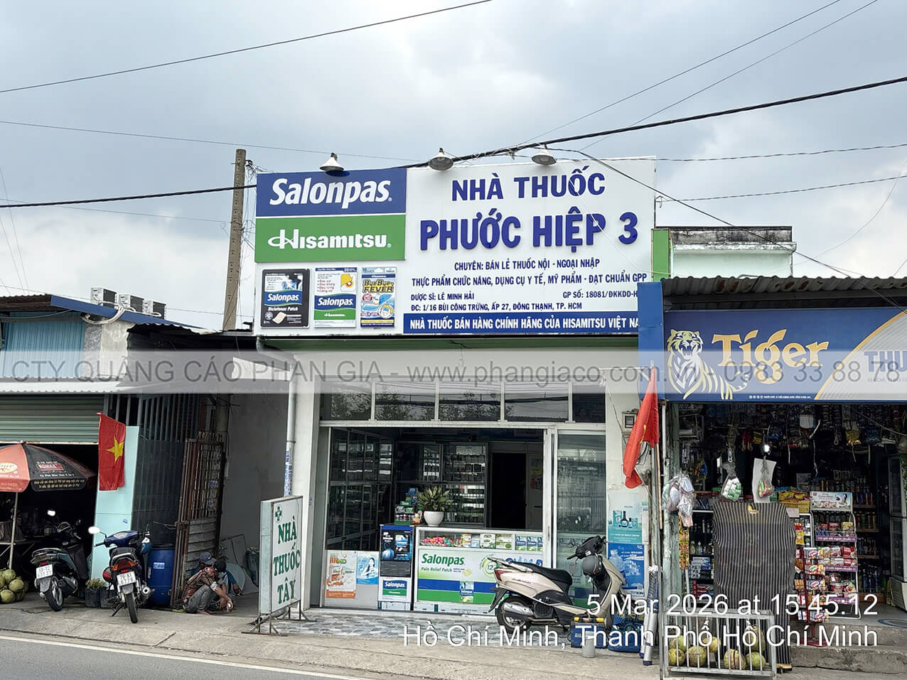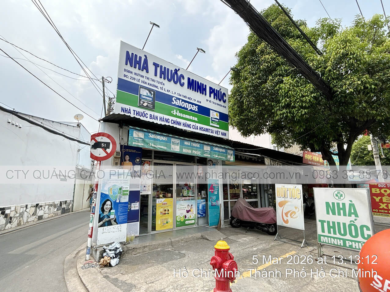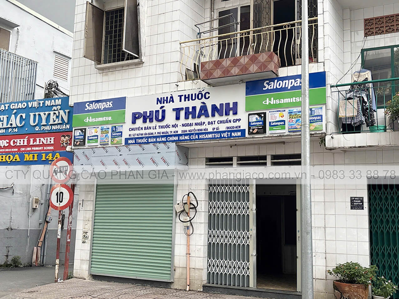 Lắp đặt hoàn thiện các hạng mục quảng cáo cho nhà thuốc tây khu vực TP. Hồ Chí Minh: bảng hiệu alu, hộp đèn hiflex, top-board, băng rôn, dán decal tủ thuốc....