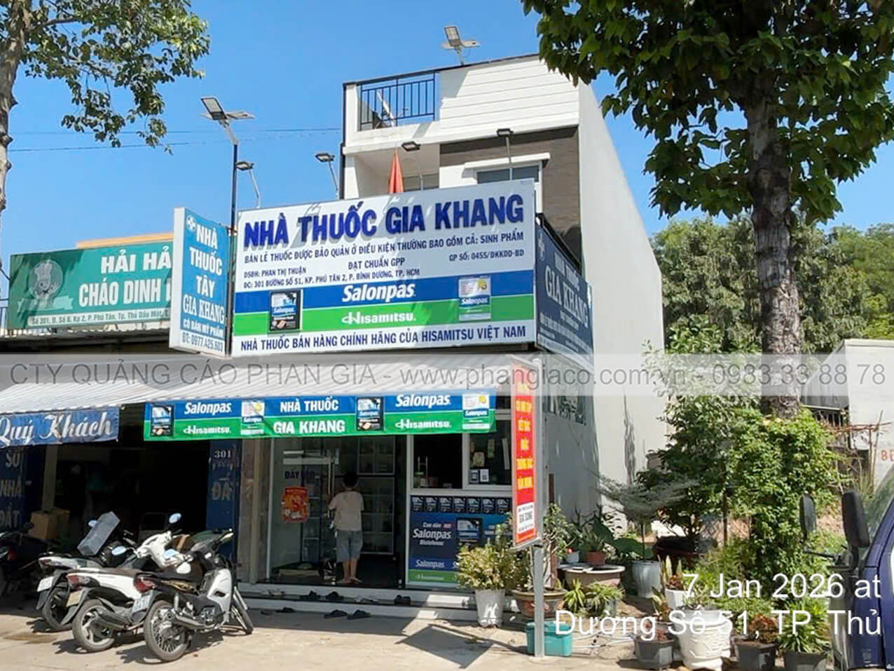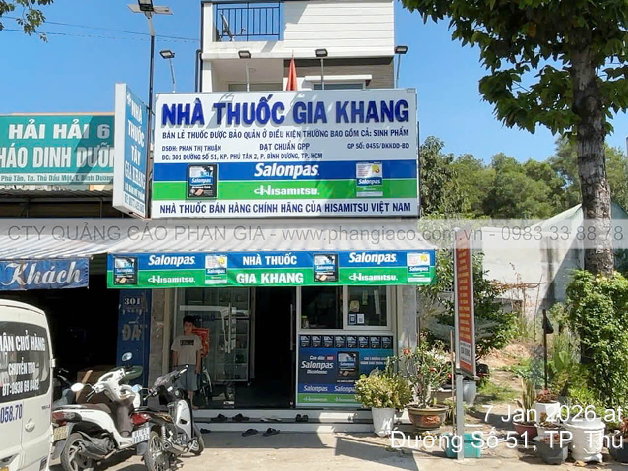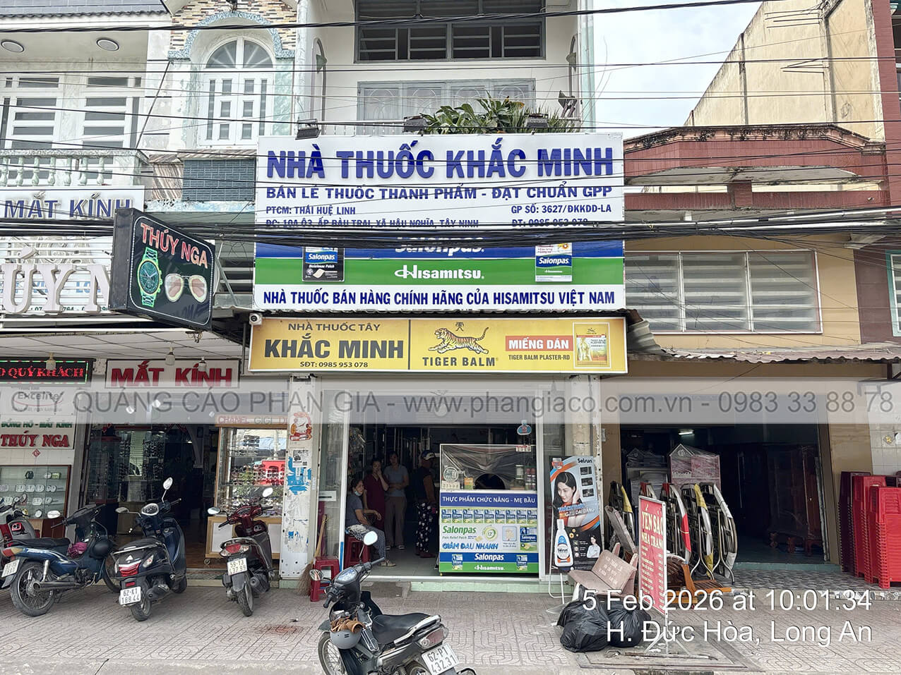 Ốp alu mặt dựng nhà thuốc, lắp đặt chữ nổi mica, chữ mica nổi nhà thuốc tây tại xã Vĩnh Hưng, Tây Ninh (thị trấn Vĩnh Hưng cũ)