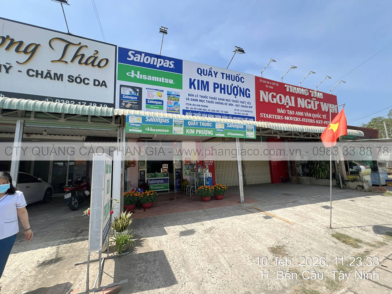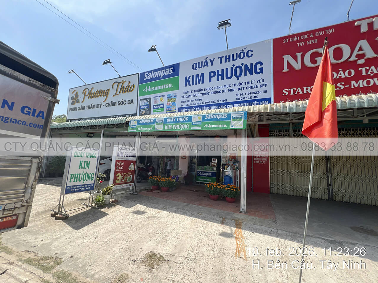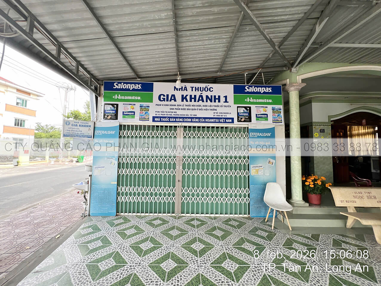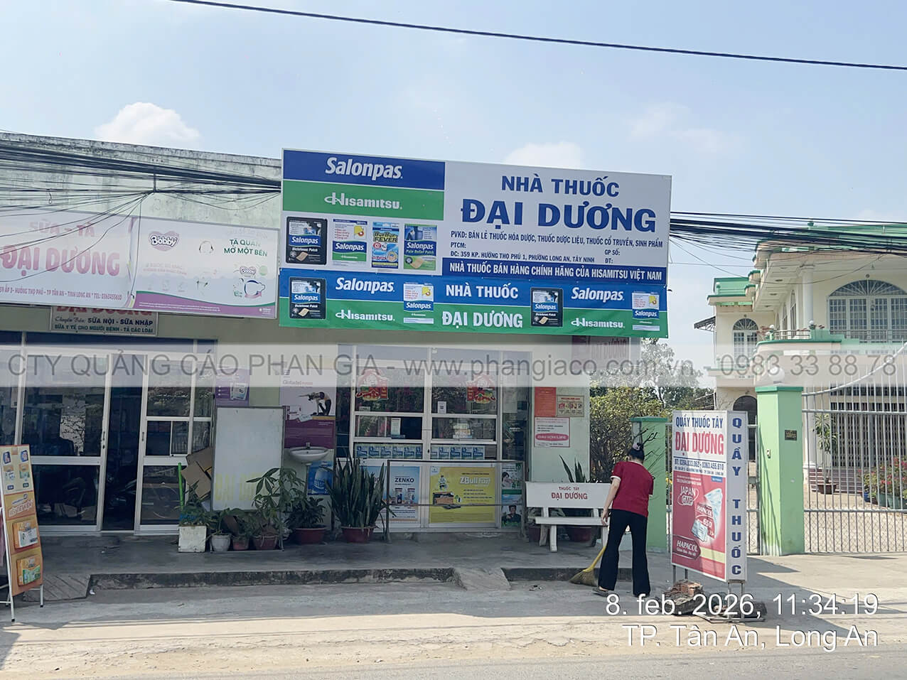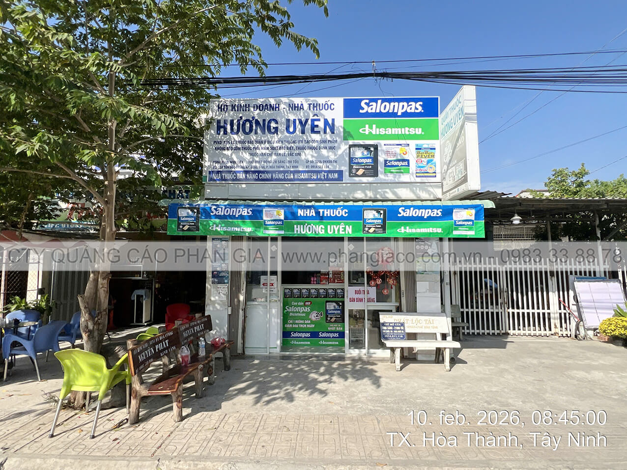 Chuỗi bảng hiệu quảng cáo với chất liệu tôn dán decal của hãng dược phẩm Hisamitsu Việt Nam được Quảng Cáo Phan Gia khảo sát, thiết kế, sản xuất, vận chuyển và lắp đặt hoàn thiện tại các nhà thuốc, quầy thuốc khu vực 02 tỉnh Long An và Tây Ninh (nay là tỉnh Tây Ninh mới) những ngày đầu năm 2026.