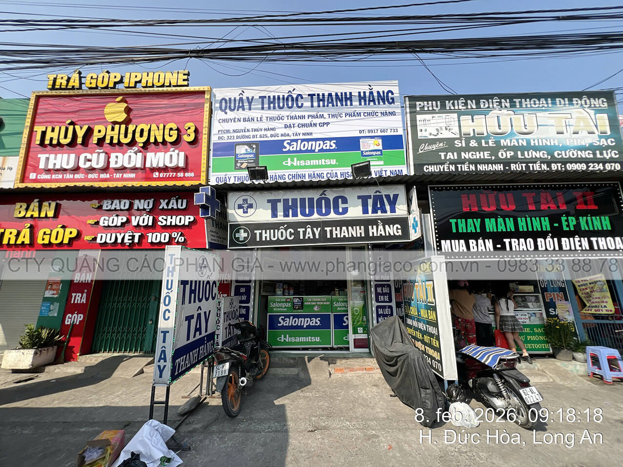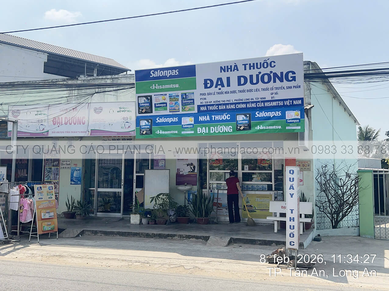Bảng hiệu tôn decal quầy thuốc được lắp đặt tại xã Cần Đước, Tây Ninh (huyện Cần Đước, Long An cũ)