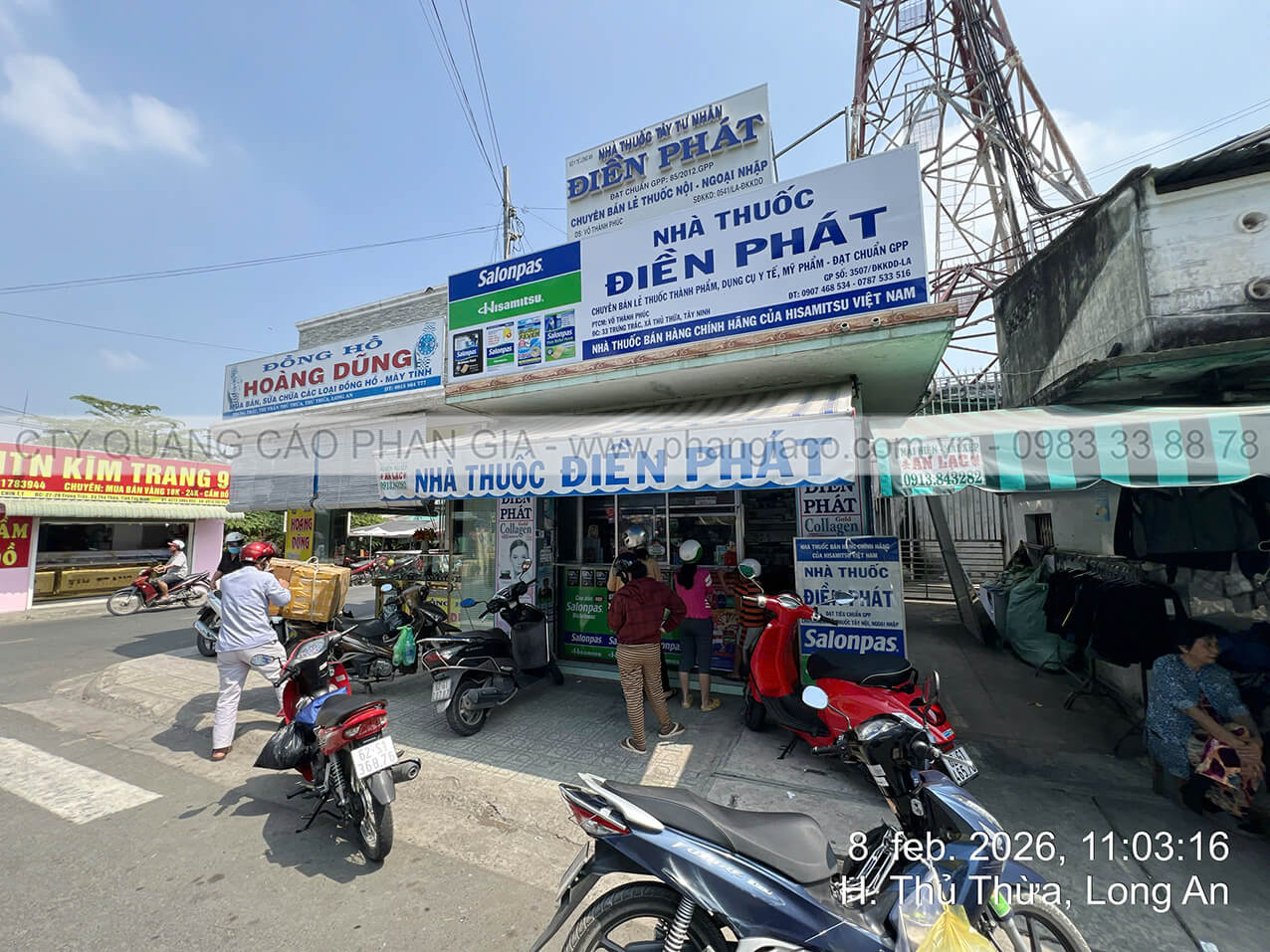 Bảng hiệu tôn quầy thuốc tây được lắp đặt tại xã Thủ Thừa, Tây Ninh (huyện Thủ Thừa cũ)