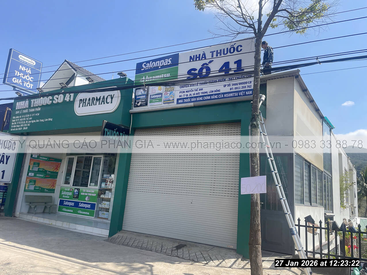 Bảng hiệu aluminium được lắp đặt xong, nghiệm thu và bàn giao cho nhà thuốc đưa vào sử dụng