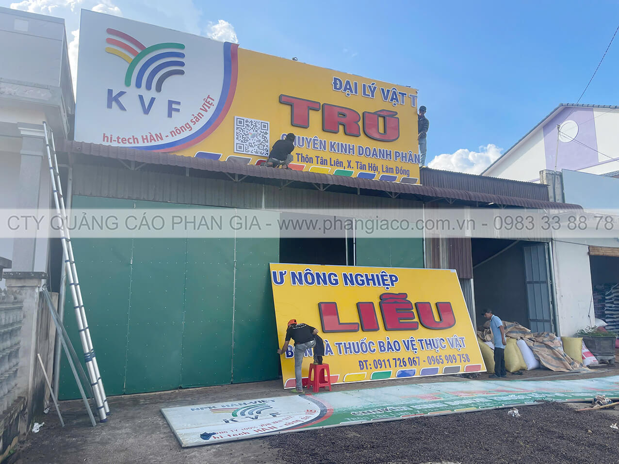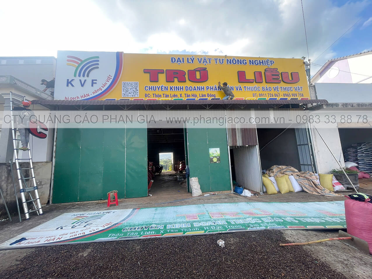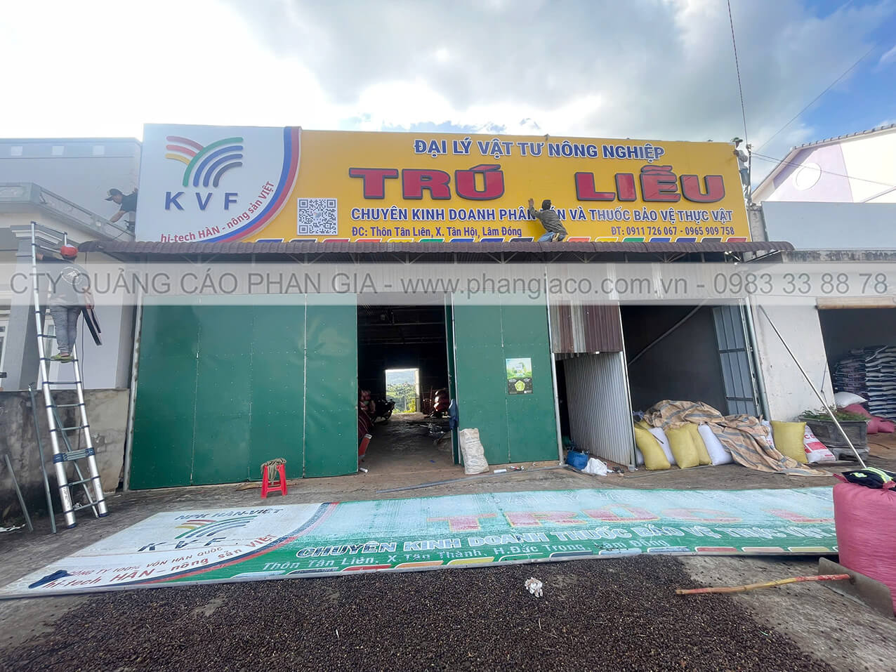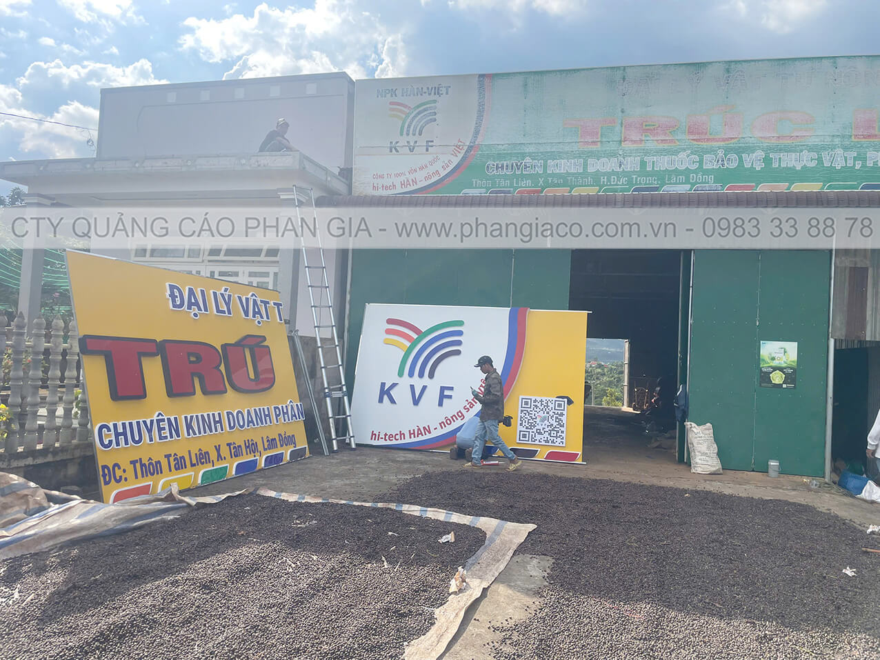 Bảng hiệu aluminium đại lý vật tư nông nghiệp được anh em thợ Phan Gia lắp đặt hoàn thiện và bàn giao cho đại lý đưa vào sử dụng tại huyện Đức Trọng, Lâm Đồng