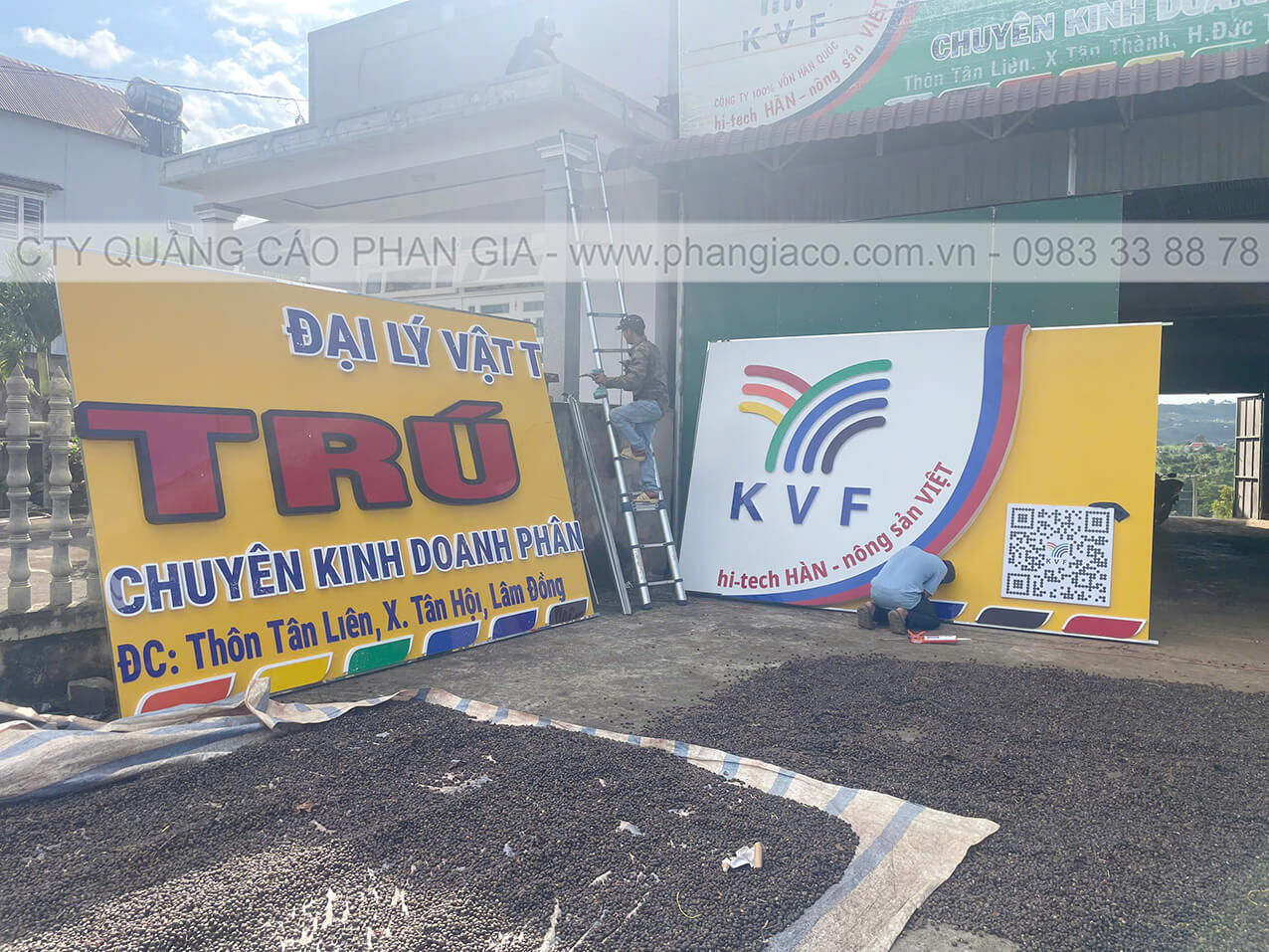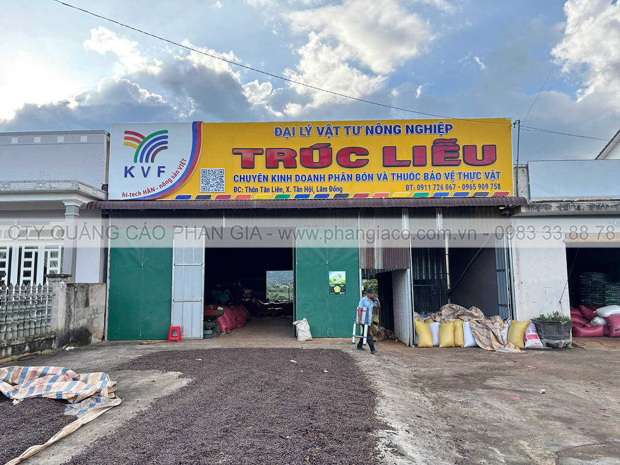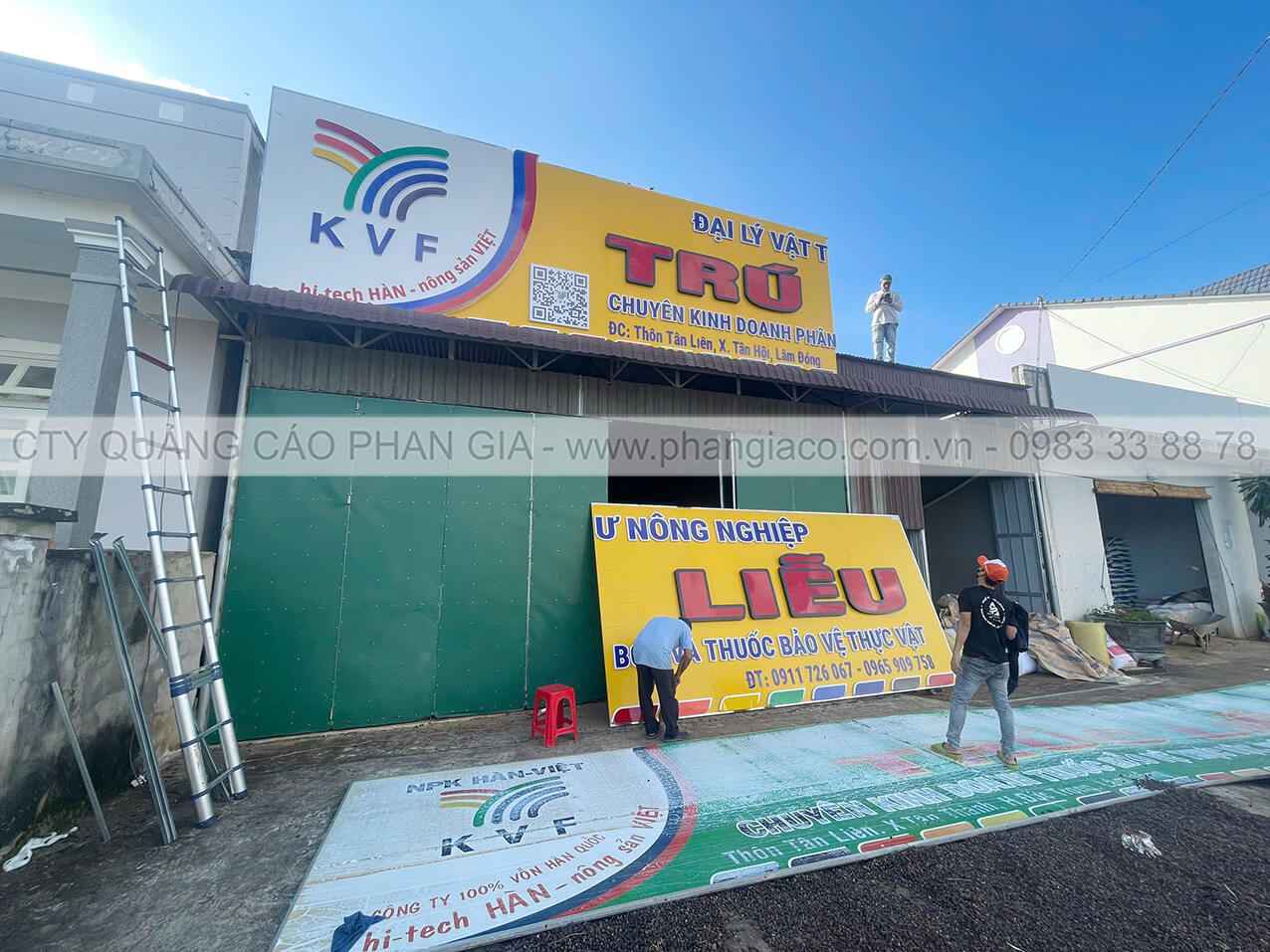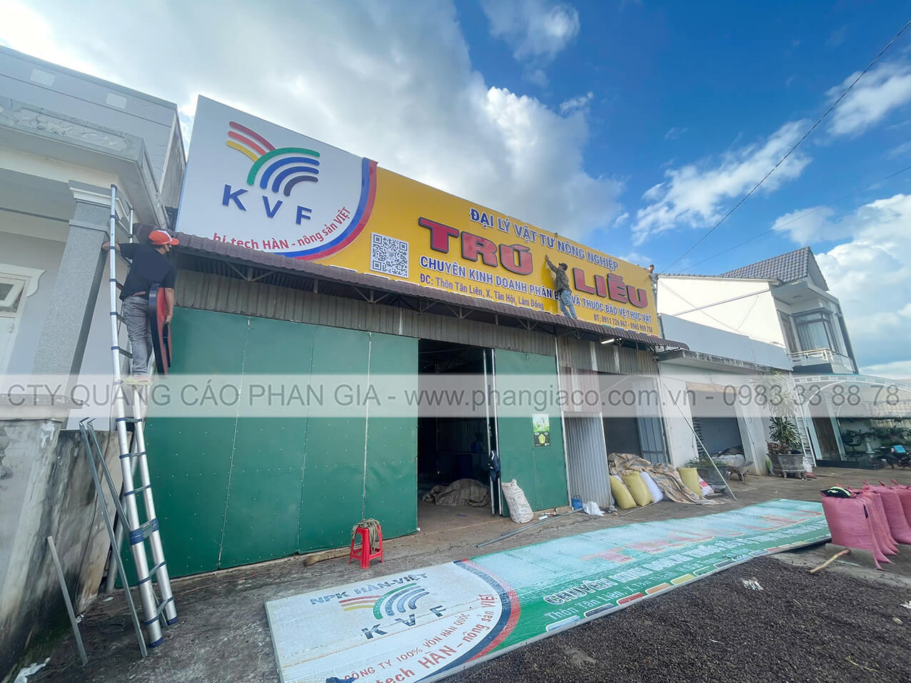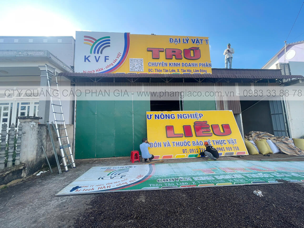 Bảng hiệu aluminium đại lý vật tư nông nghiệp được anh em thợ Phan Gia lắp đặt hoàn thiện và bàn giao cho đại lý đưa vào sử dụng tại huyện Đức Trọng, Lâm Đồng