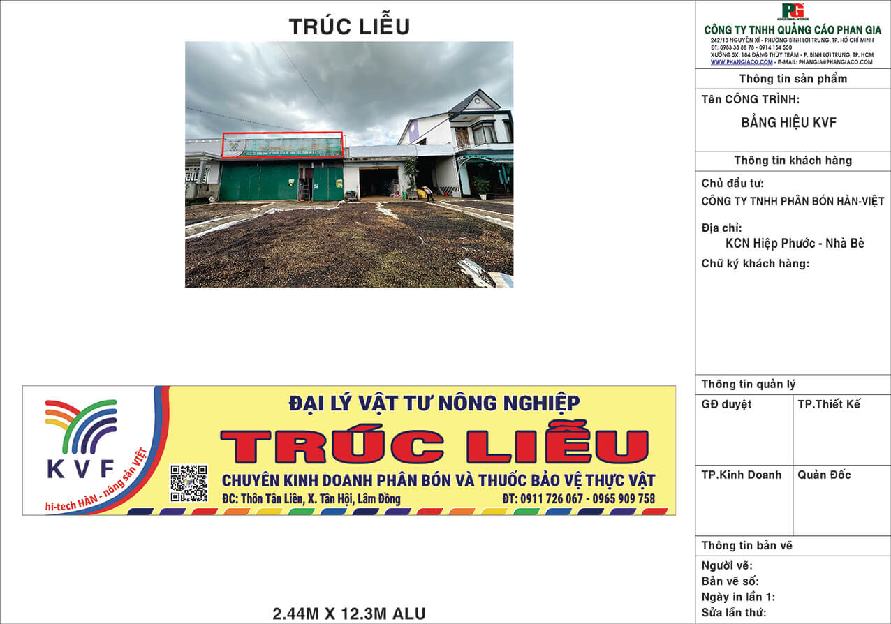 Khảo sát vị trí lắp đặt bảng, kích thước bảng, thiết kế maquette bảng hiệu alu đại lý vật tư nông nghiệp tại huyện Đức Trọng, Lâm Đồng