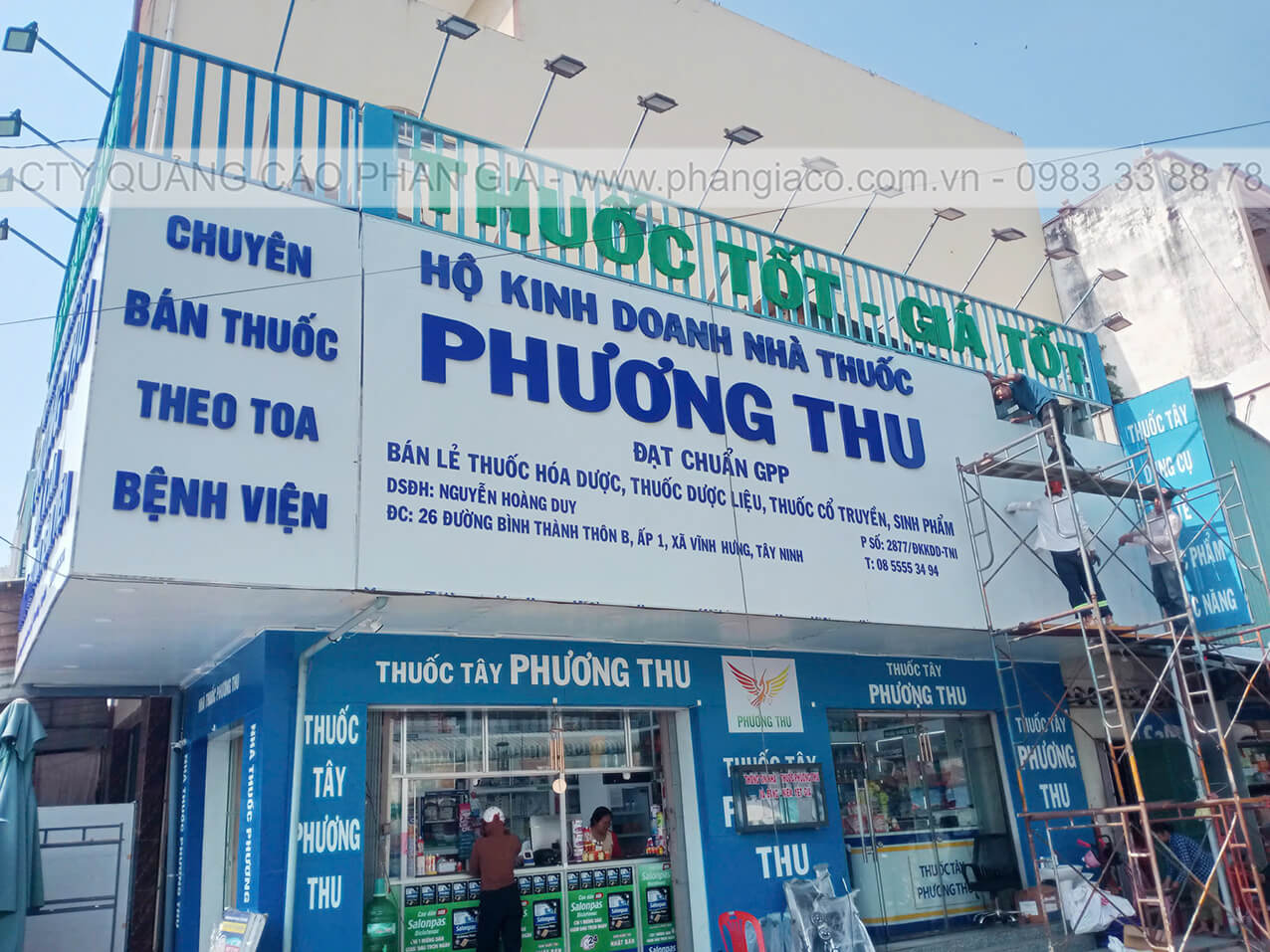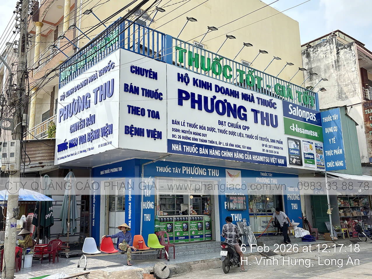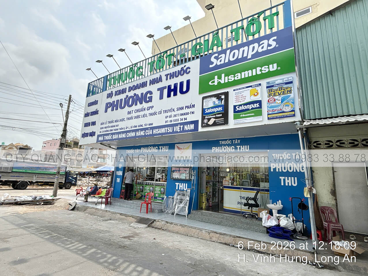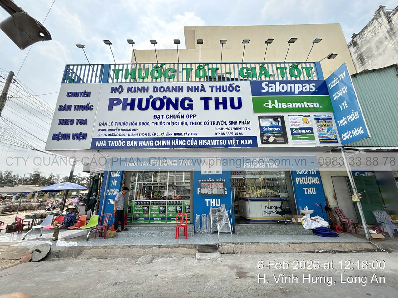 Công trình thi công cải tạo mặt dựng alu nhà thuốc tây Phương Thu tại thị trấn Vĩnh Hưng, Long An được Quảng Cáo Phan Gia khảo sát, thiết kế, thi công, lắp đặt hoàn thiện bàn giao cho cho khách hàng đưa vào sử dụng tháng 02/2026.