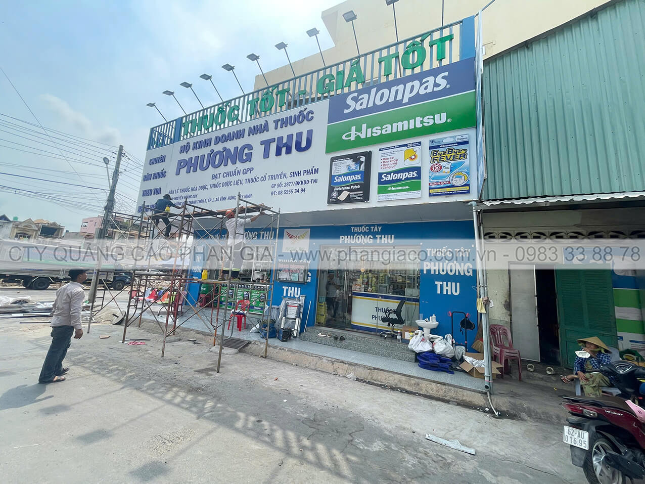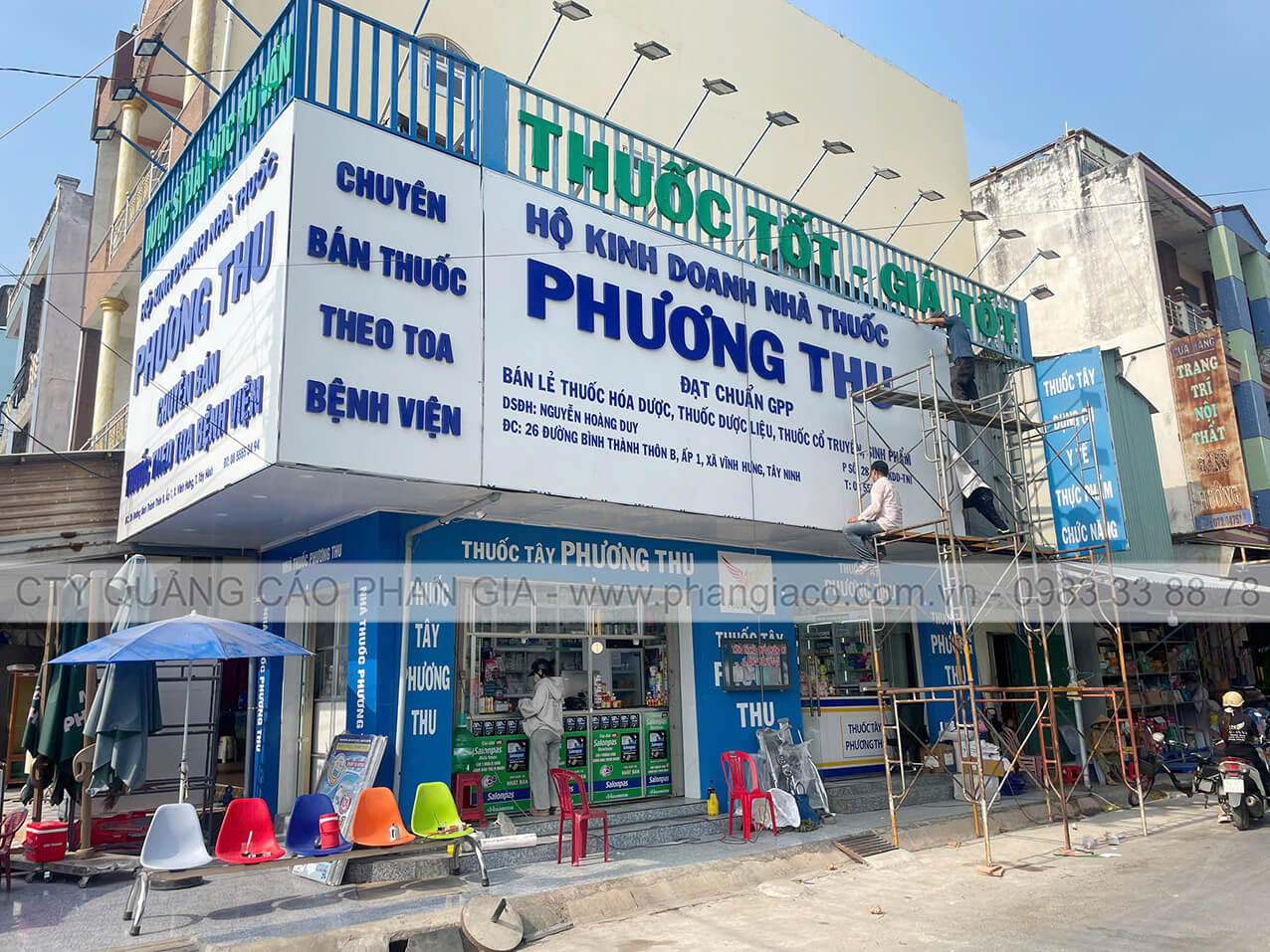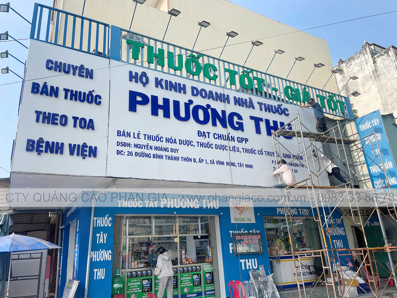Công trình thi công cải tạo mặt dựng alu nhà thuốc tây Phương Thu tại thị trấn Vĩnh Hưng, Long An được Quảng Cáo Phan Gia khảo sát, thiết kế, thi công, lắp đặt hoàn thiện bàn giao cho cho khách hàng đưa vào sử dụng tháng 02/2026.