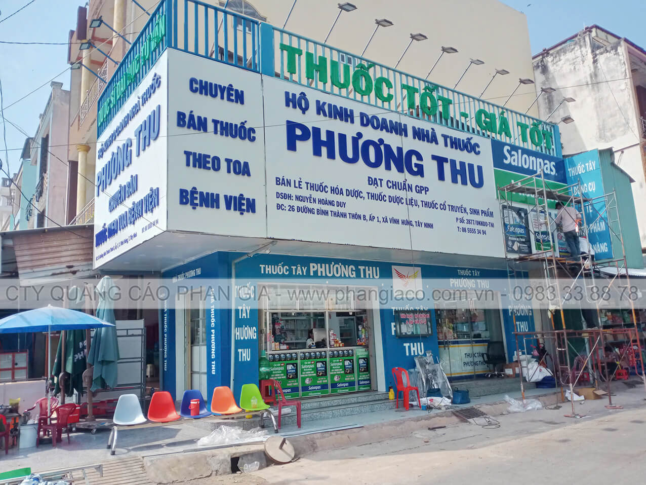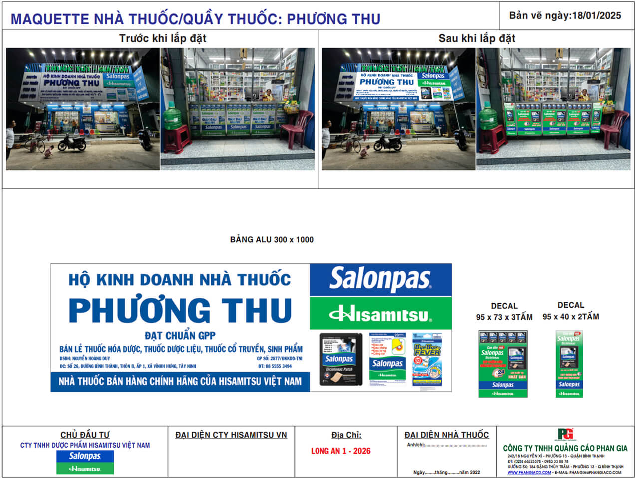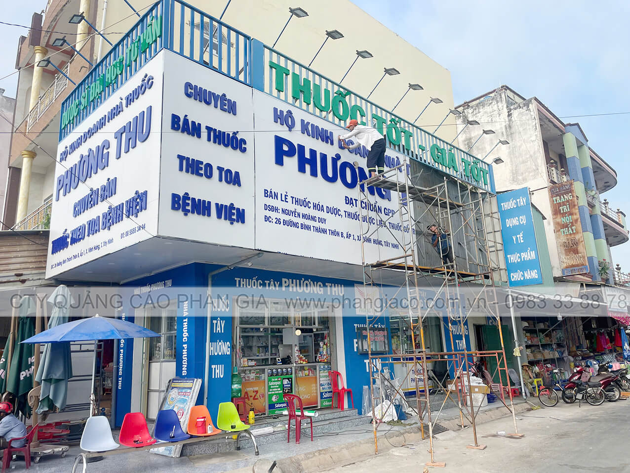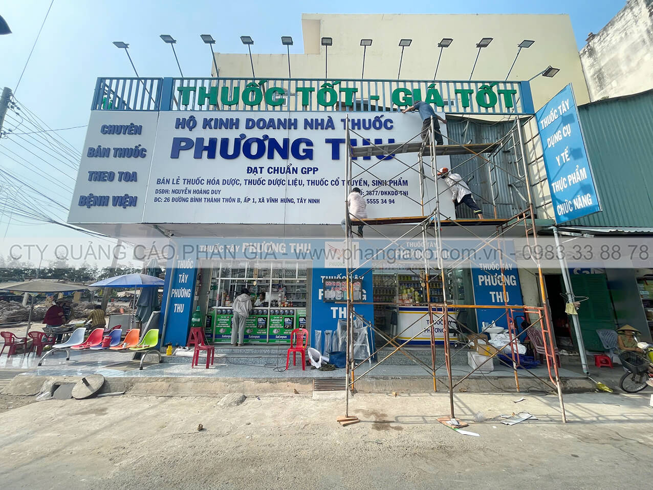 Công trình thi công cải tạo mặt dựng alu nhà thuốc tây Phương Thu tại thị trấn Vĩnh Hưng, Long An được Quảng Cáo Phan Gia khảo sát, thiết kế, thi công, lắp đặt hoàn thiện bàn giao cho cho khách hàng đưa vào sử dụng tháng 02/2026.