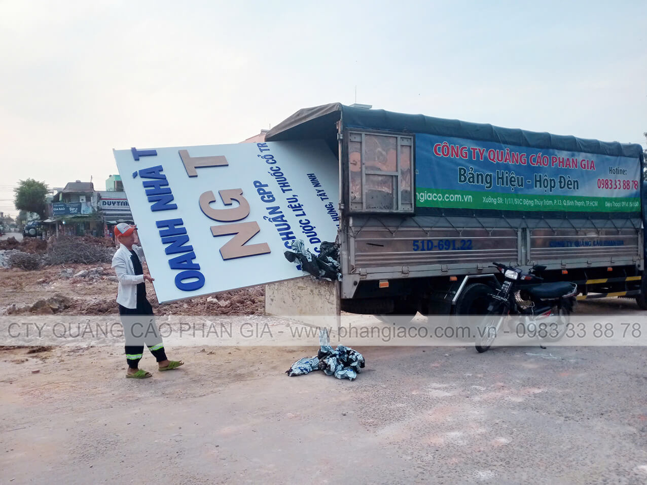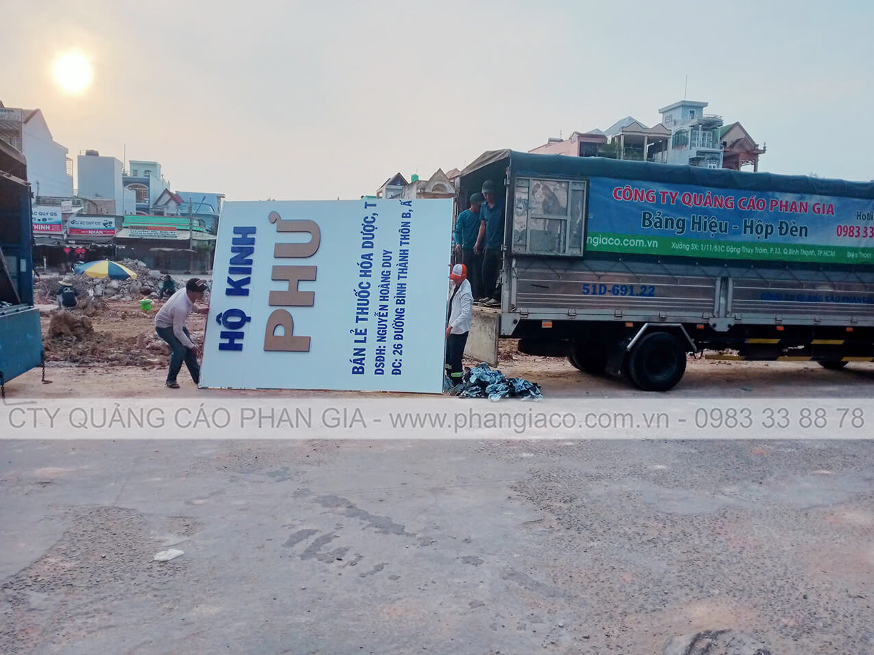 Bảng quảng cáo alu được sản xuất hoàn thiện thành phẩm tại xưởng Phan Gia được xe công ty vận chuyển tận nơi