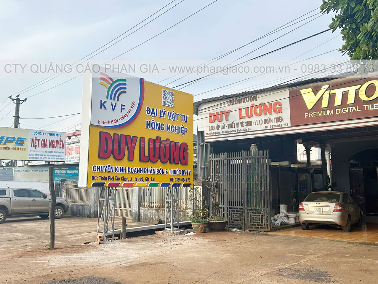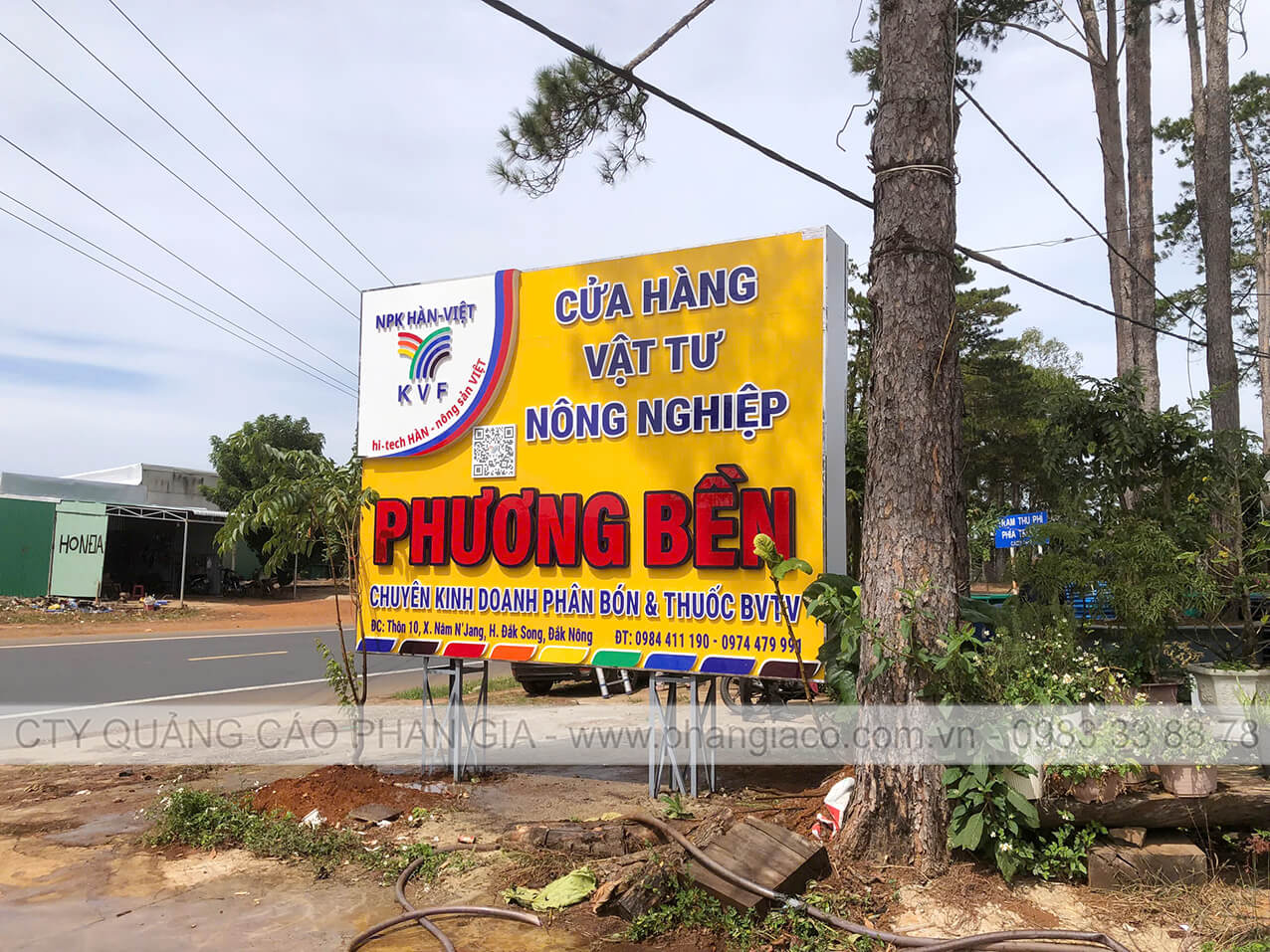 Pano quảng cáo alu cửa hàng vật tư nông nghiệp 02 mặt Phan Gia thi công & lắp đặt tại Gia Lai