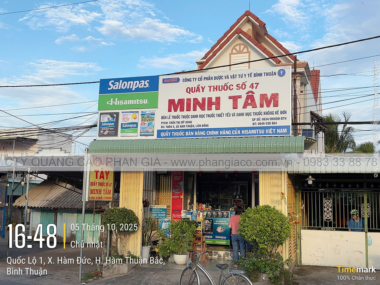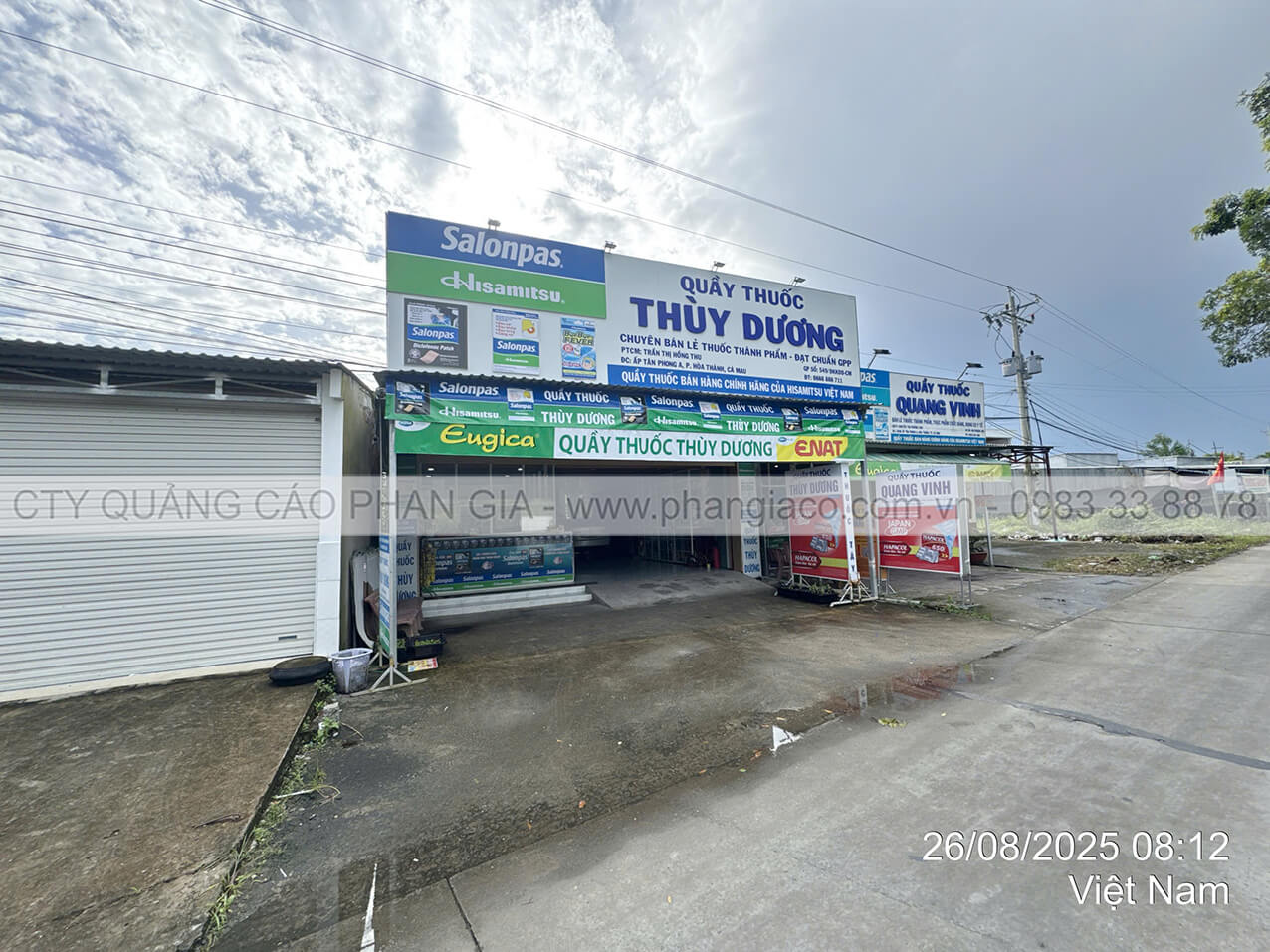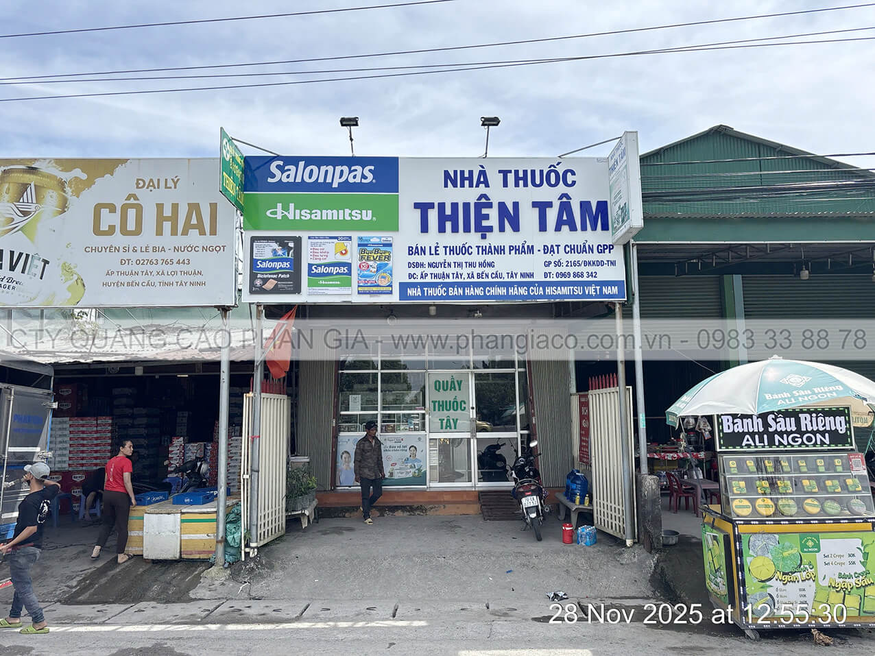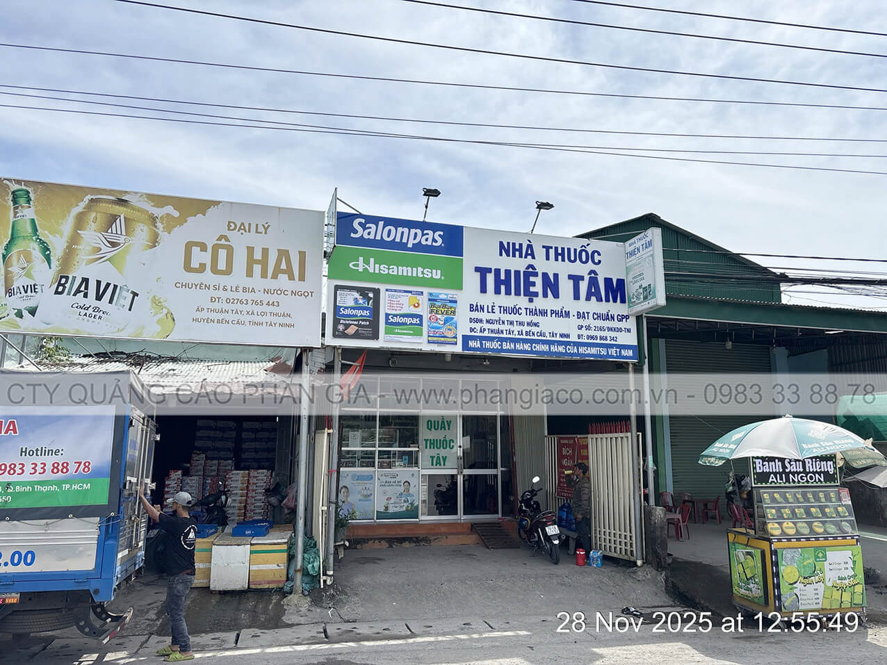 Bảng hiệu quảng cáo với quy cách nhôm nội dung chữ mica nhà thuốc lắp đặt tại xã Bến Cầu, Tây Ninh