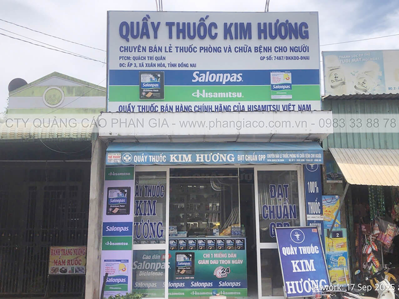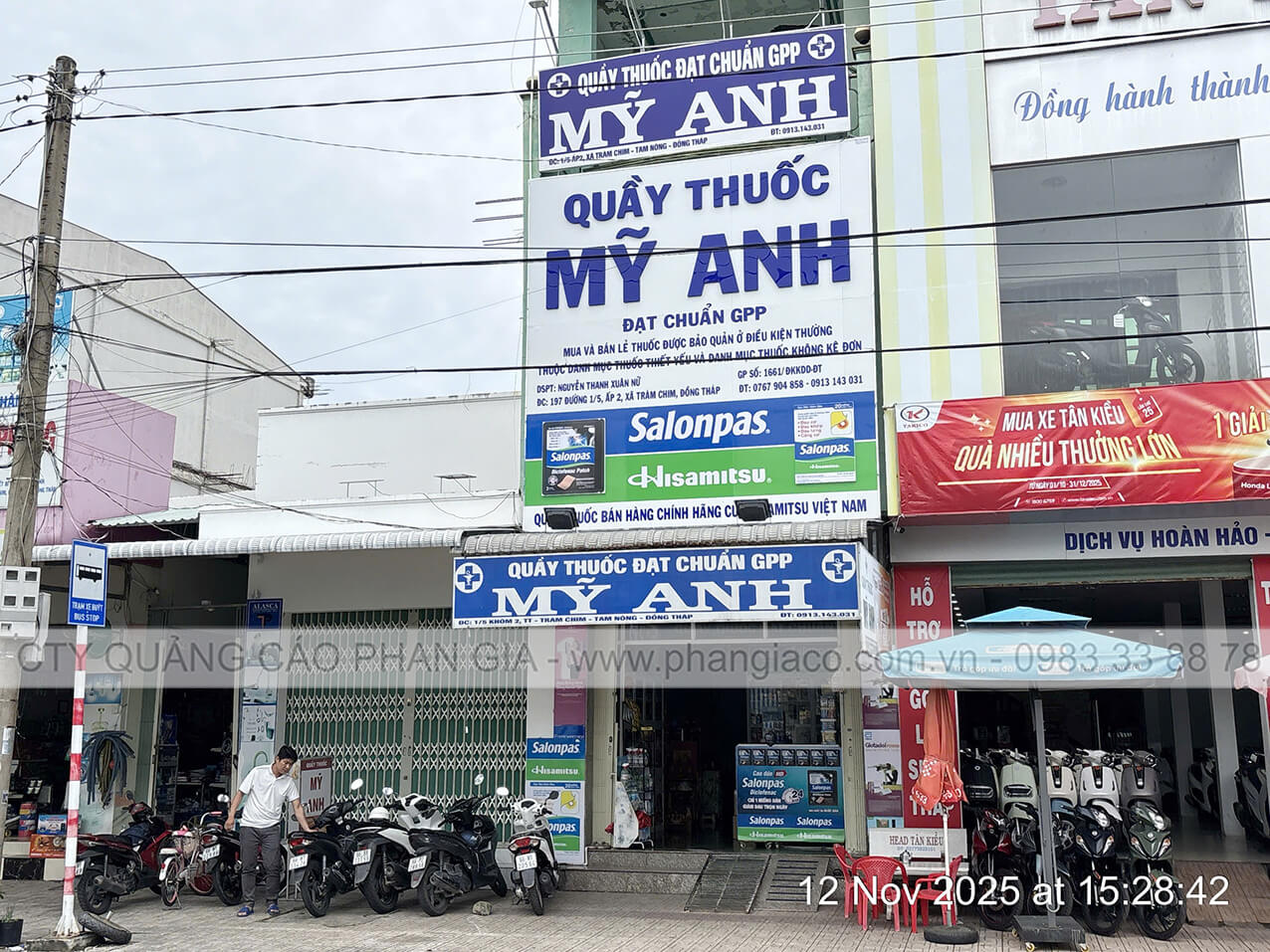 Bảng hiệu nhôm aluminium chữ mica quầy thuốc lắp đặt tại xã Bình Thành, Đồng Tháp