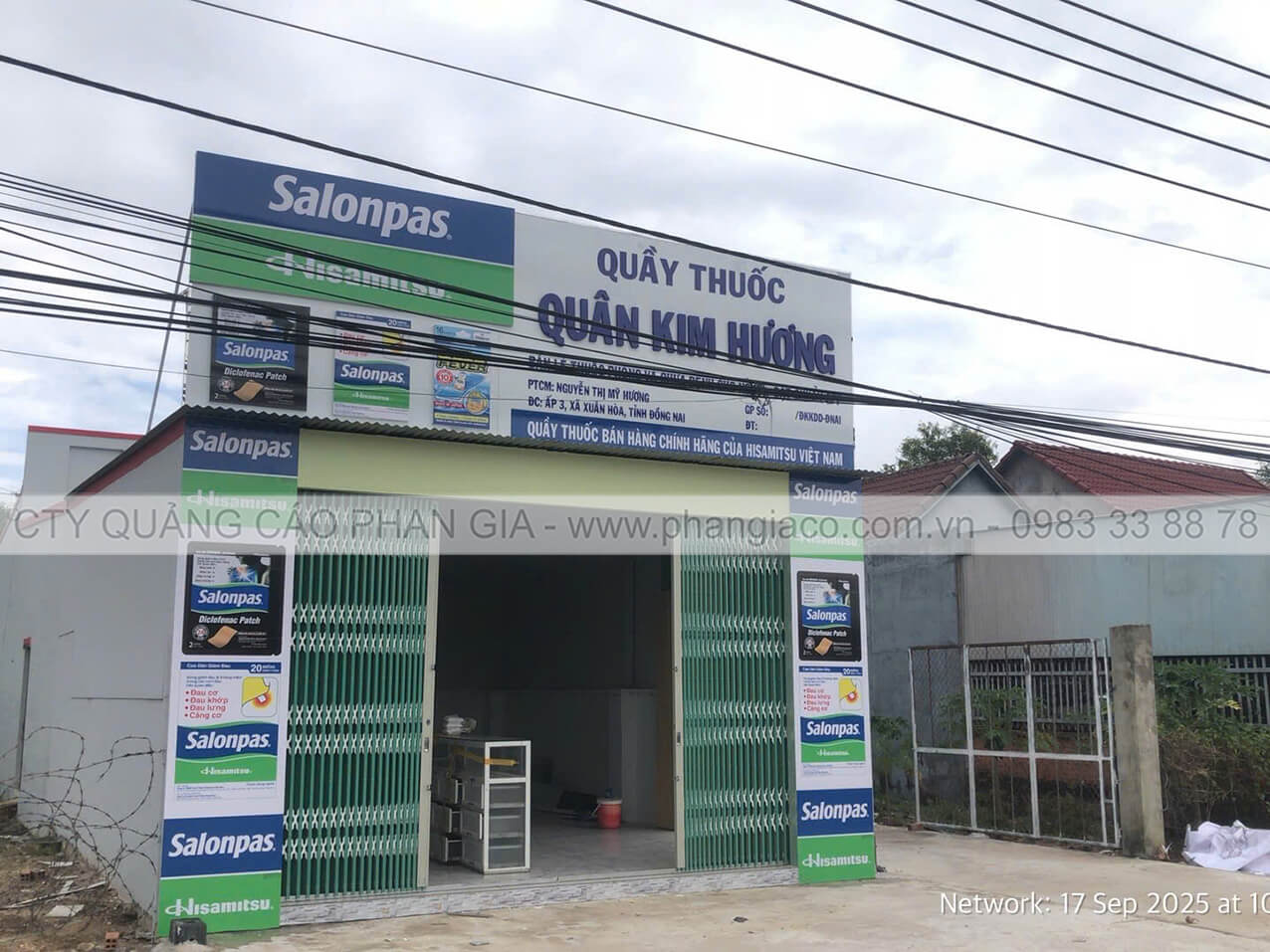Bảng hiệu aluminium nội dung chữ mica Phan Gia lắp đặt tại xã Tràm Chim, Đồng Tháp (thị trấn Tràm Chim, huyện Tam Nông cũ)