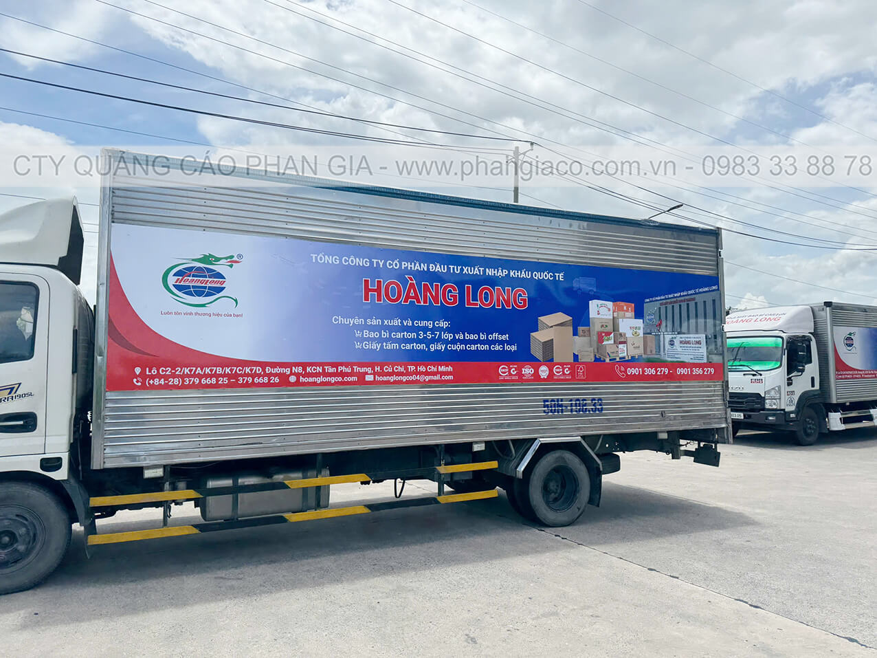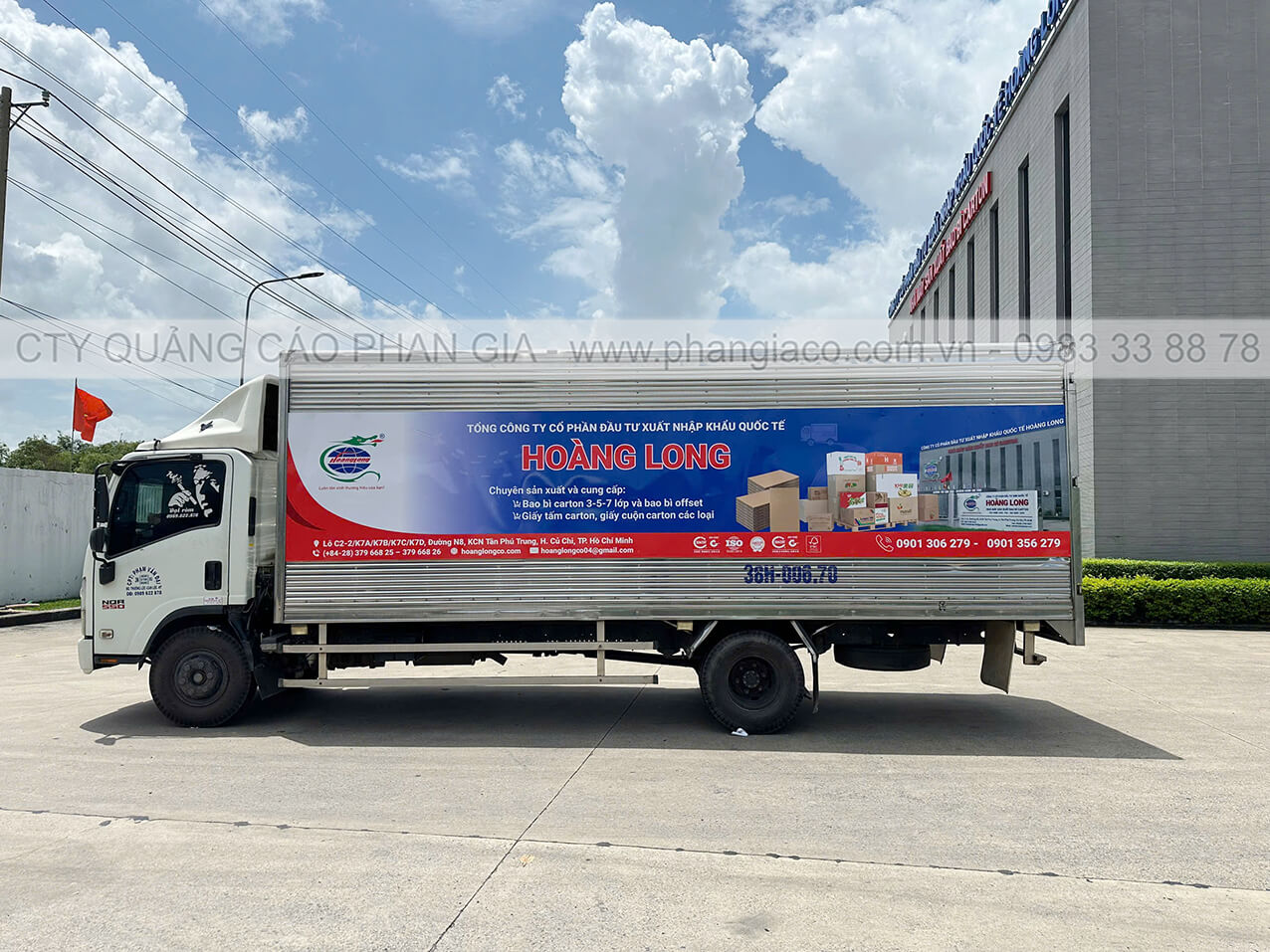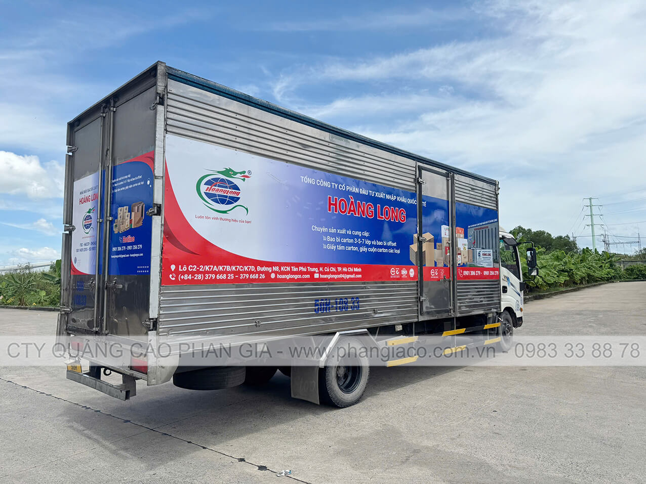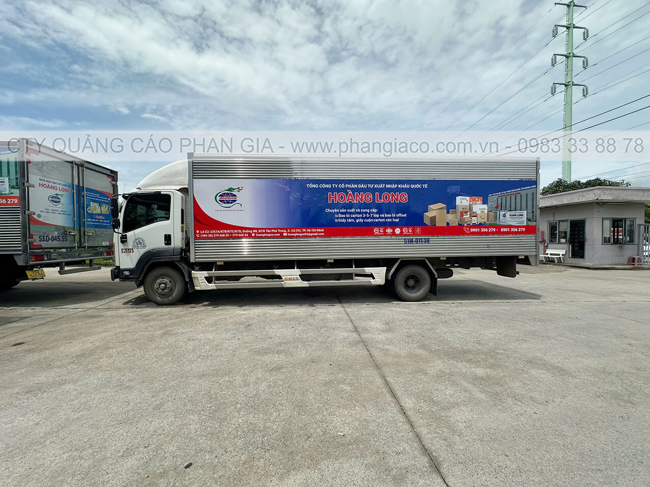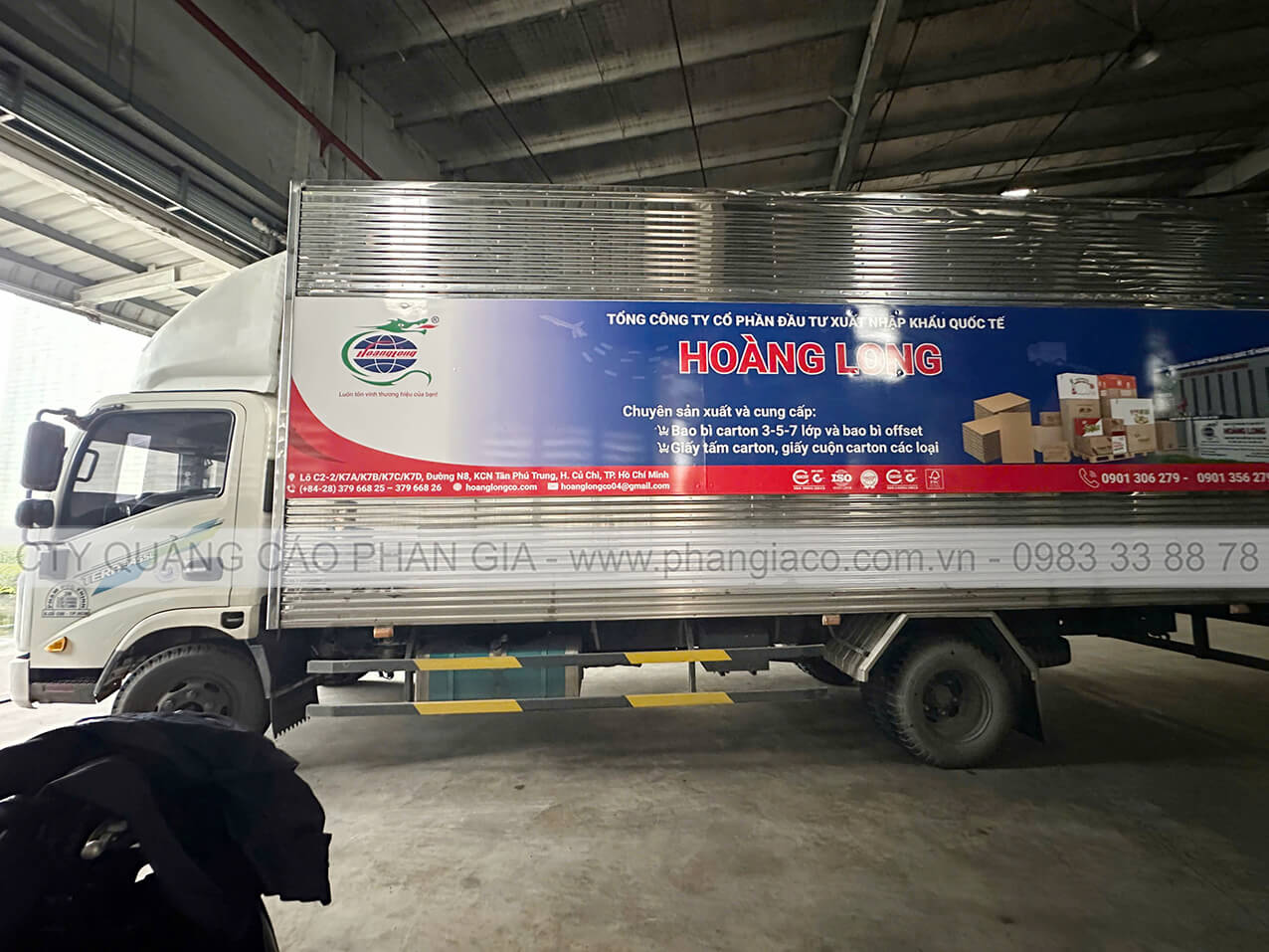Quảng Cáo Phan Gia, đơn vị chuyên khảo sát, thiết kế, thi công dán decal quảng cáo 02 bên hông thùng xe tải uy tin - chuyên nghiệp - giá cả cạnh tranh tại TP. Hồ Chí Minh cho các công ty, hãng, nhà phân phối hợp tác xã có nhu cầu quảng bá logo hình ảnh sản phẩm của minh qua kênh phương tiện vận tải, kênh quảng cáo với chi phí thấp nhưng hiệu quả cao. Tổng hợp top 20 hình ảnh dán decal quảng cáo xe tải Phan Gia đã và đang thực hiện cho khách hàng với số lượng thi công hơn 100 xe tải của khách hàng dán mới và thay decal cũ của Công ty XNK Bao Bì Hoàng Long - KCN Tân Phú Trung, Củ Chi.
