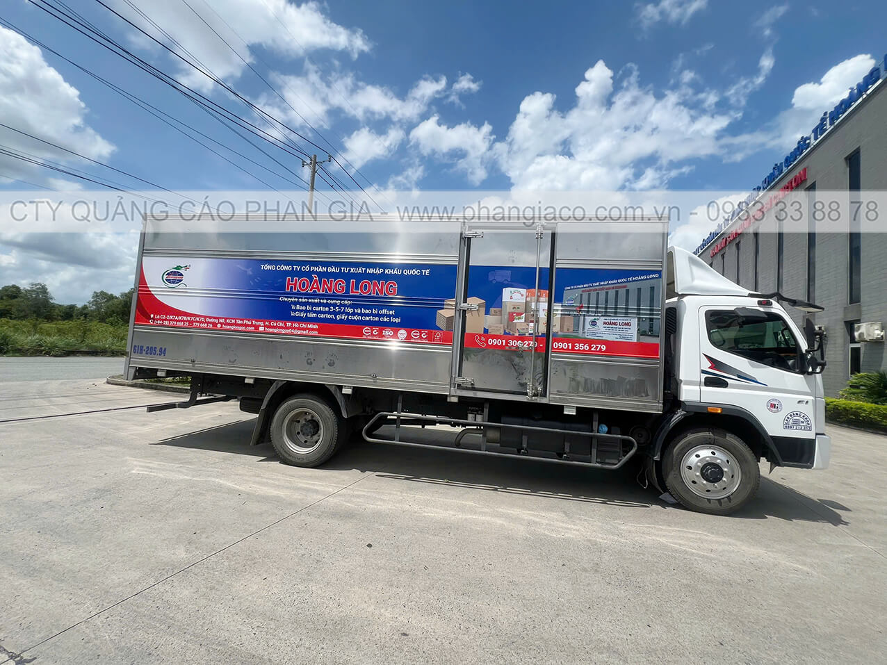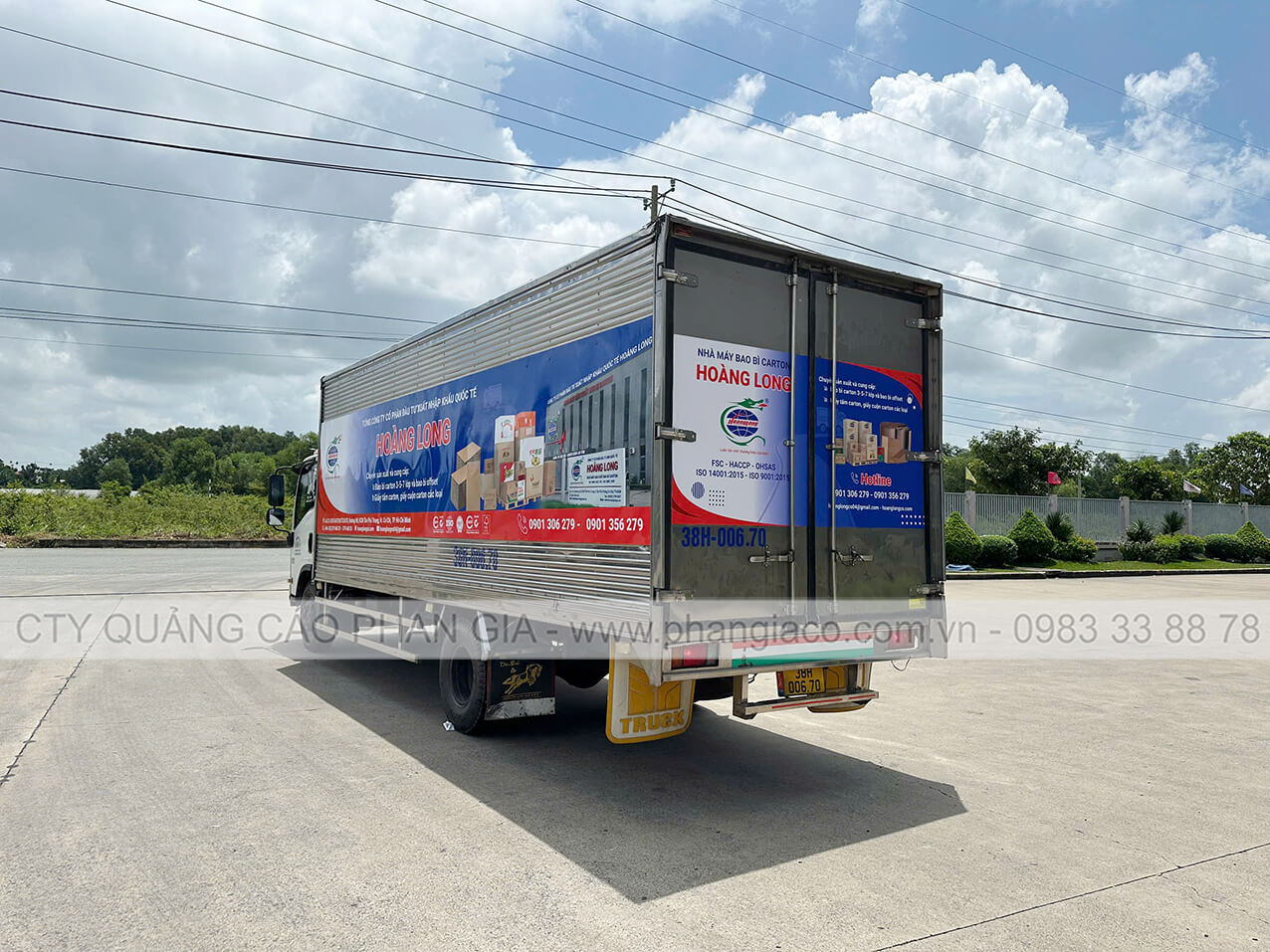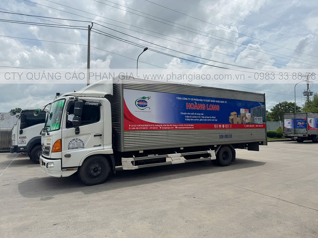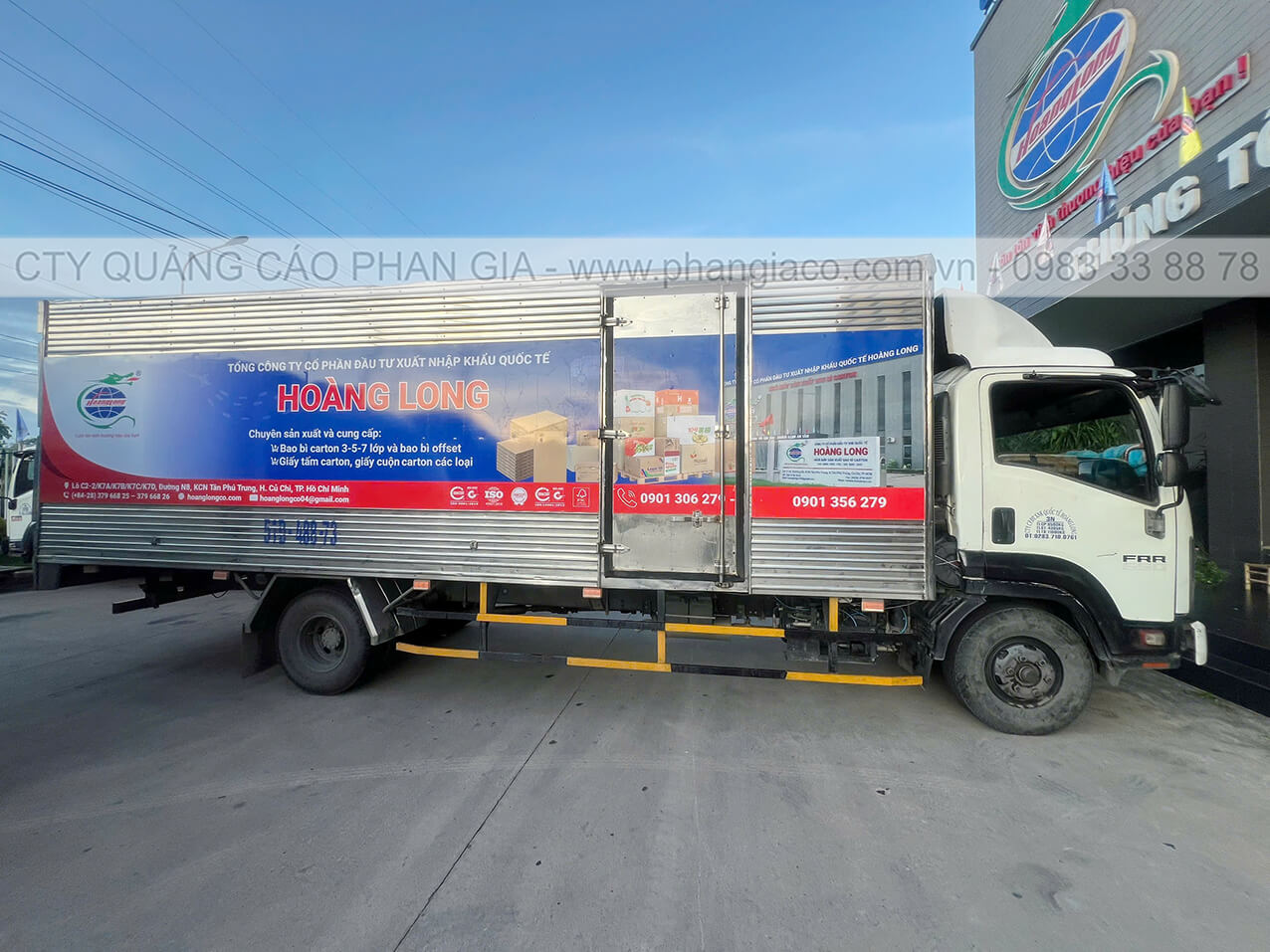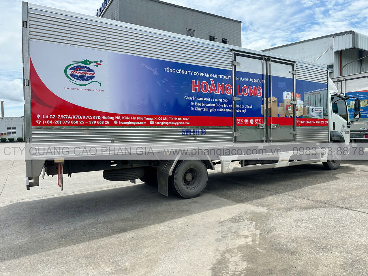 Quảng Cáo Phan Gia, đơn vị chuyên khảo sát, thiết kế, thi công dán decal quảng cáo 02 bên hông thùng xe tải uy tin - chuyên nghiệp - giá cả cạnh tranh tại TP. Hồ Chí Minh cho các công ty, hãng, nhà phân phối hợp tác xã có nhu cầu quảng bá logo hình ảnh sản phẩm của minh qua kênh phương tiện vận tải, kênh quảng cáo với chi phí thấp nhưng hiệu quả cao. Tổng hợp top 20 hình ảnh dán decal quảng cáo xe tải Phan Gia đã và đang thực hiện cho khách hàng với số lượng thi công hơn 100 xe tải của khách hàng dán mới và thay decal cũ của Công ty XNK Bao Bì Hoàng Long - KCN Tân Phú Trung, Củ Chi.