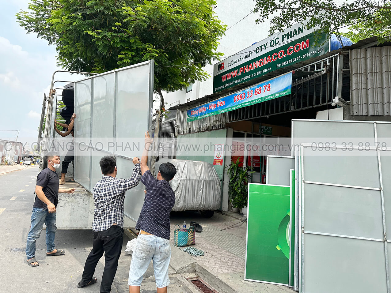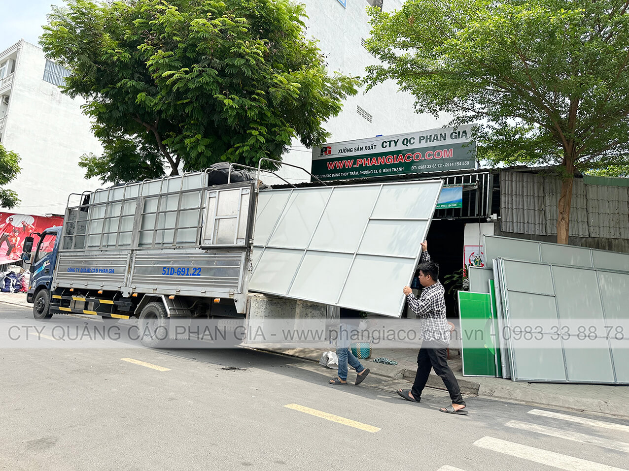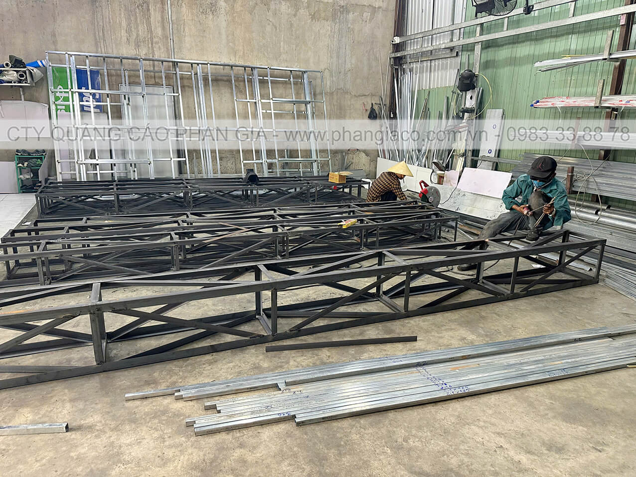 Tại xưởng sản xuất Quảng Cáo Phan Gia, tất cả hạng mục thi công thực hiện cho khách hàng đều được chúng tôi trực tiếp sản xuất hoàn thiện tại xưởng và được xe công ty vận chuyển ra công trình