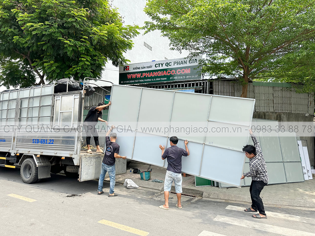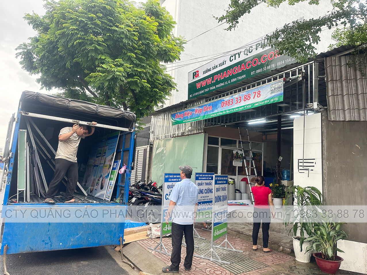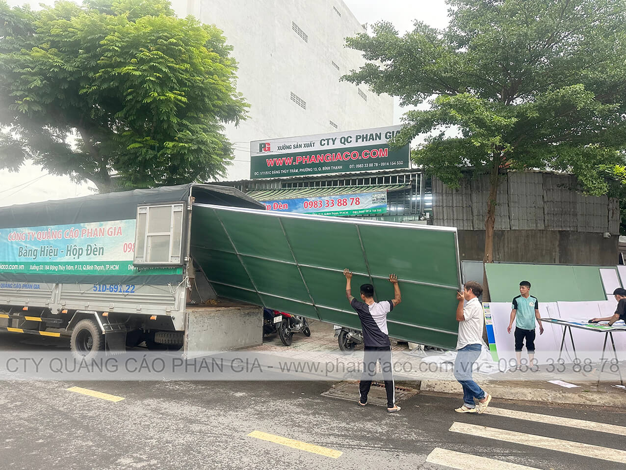 Tại xưởng sản xuất Quảng Cáo Phan Gia, tất cả hạng mục thi công thực hiện cho khách hàng đều được chúng tôi trực tiếp sản xuất hoàn thiện tại xưởng và được xe công ty vận chuyển ra công trình