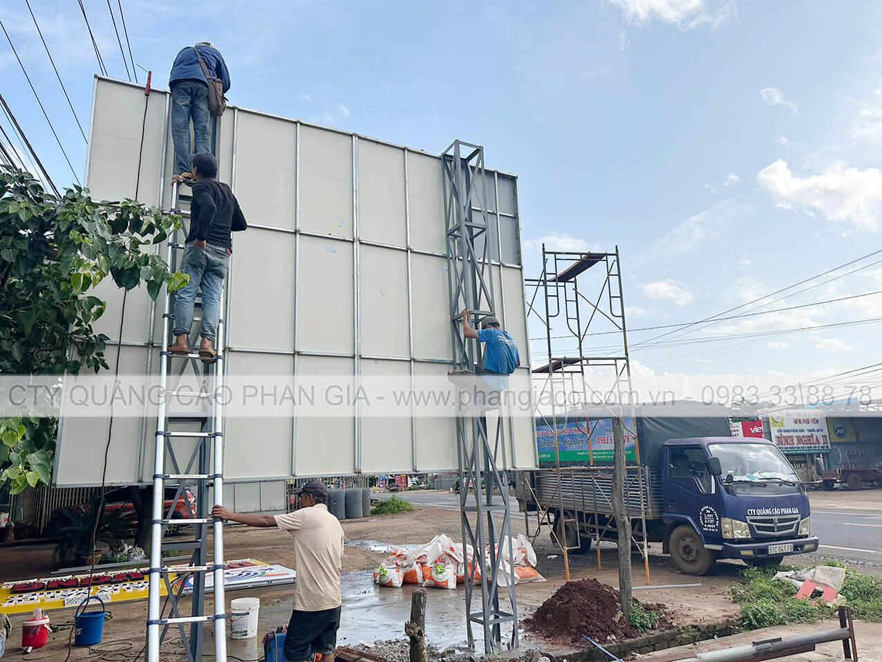 Gia công hàn trụ pano quảng cáo, trụ bảng quảng cáo alu 02 mặt