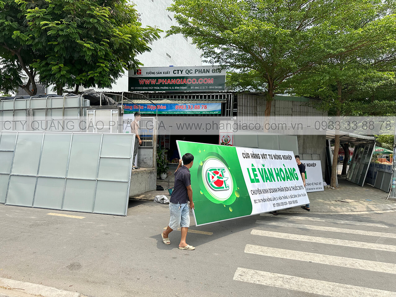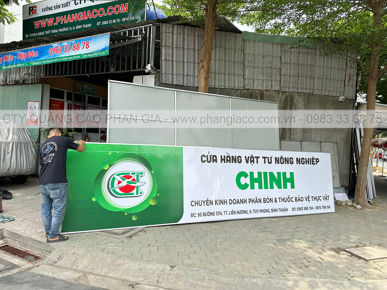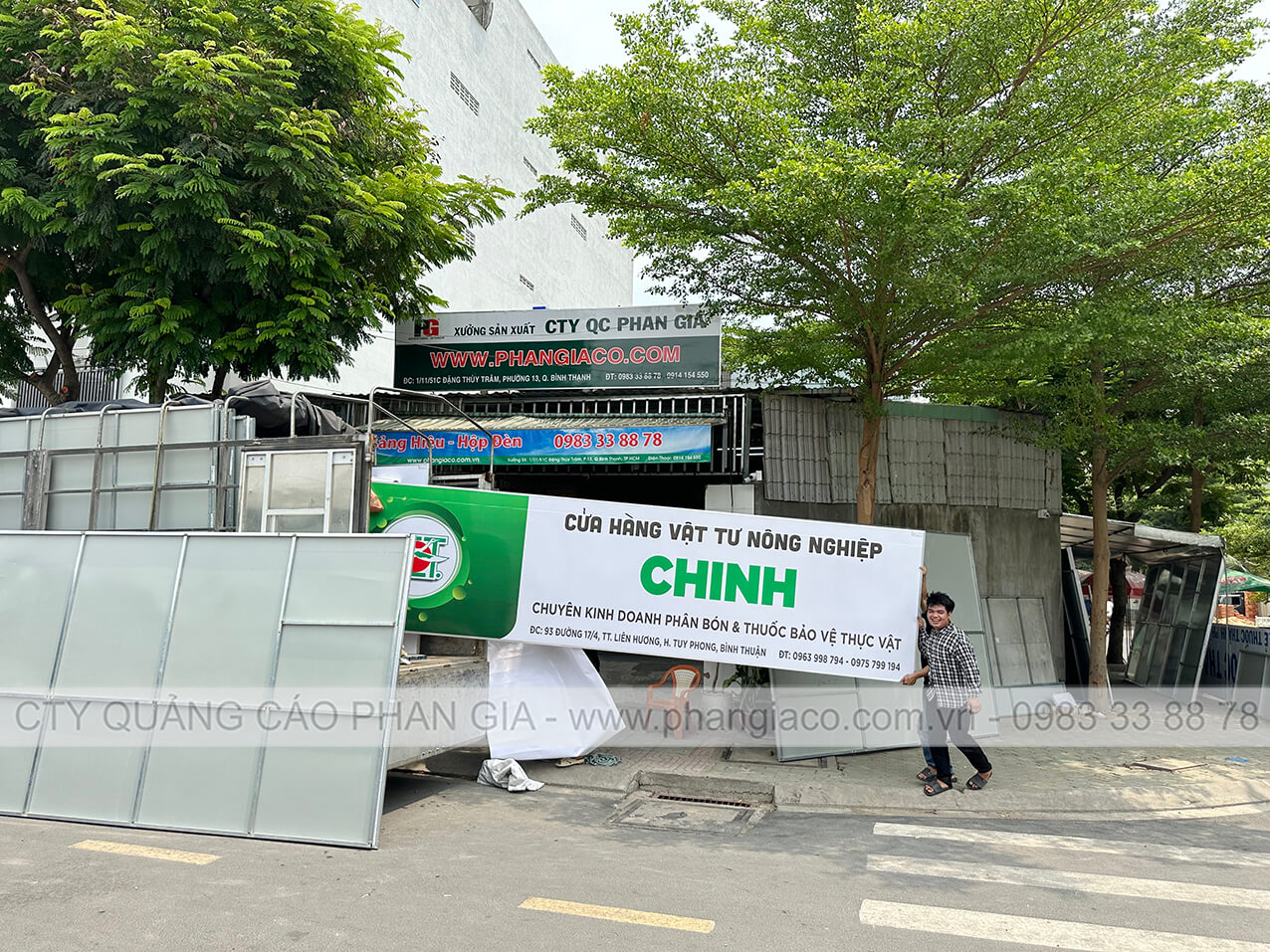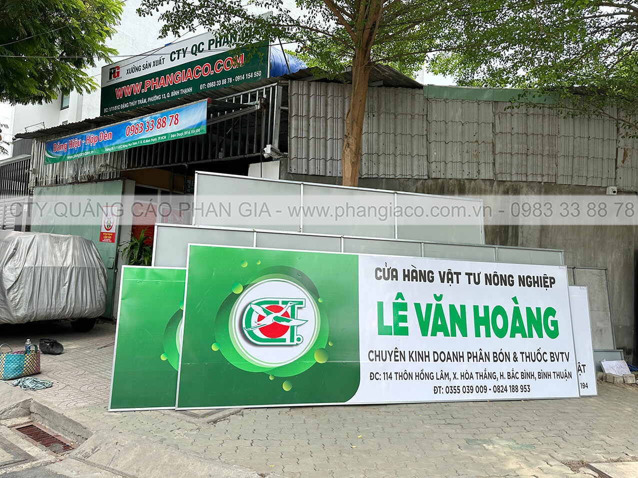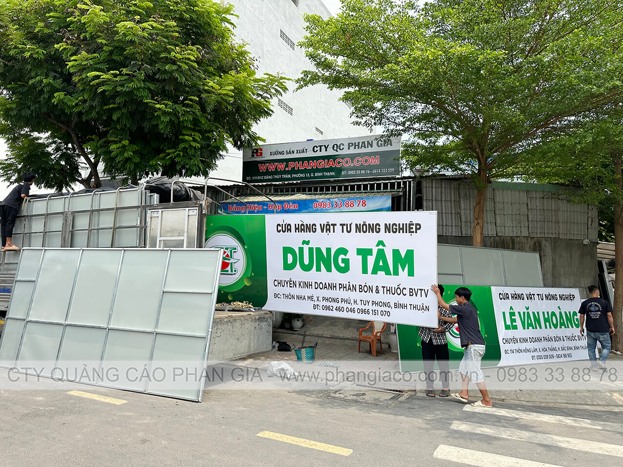 Tất cả bảng hiệu quảng cáo cửa hàng vật tư nông nghiệp đều được sản xuất và gia công thành phẩm tại xưởng Phan Gia và được xe tải công ty chuyên chở trực tiếp đến đại lý/cửa hàng.