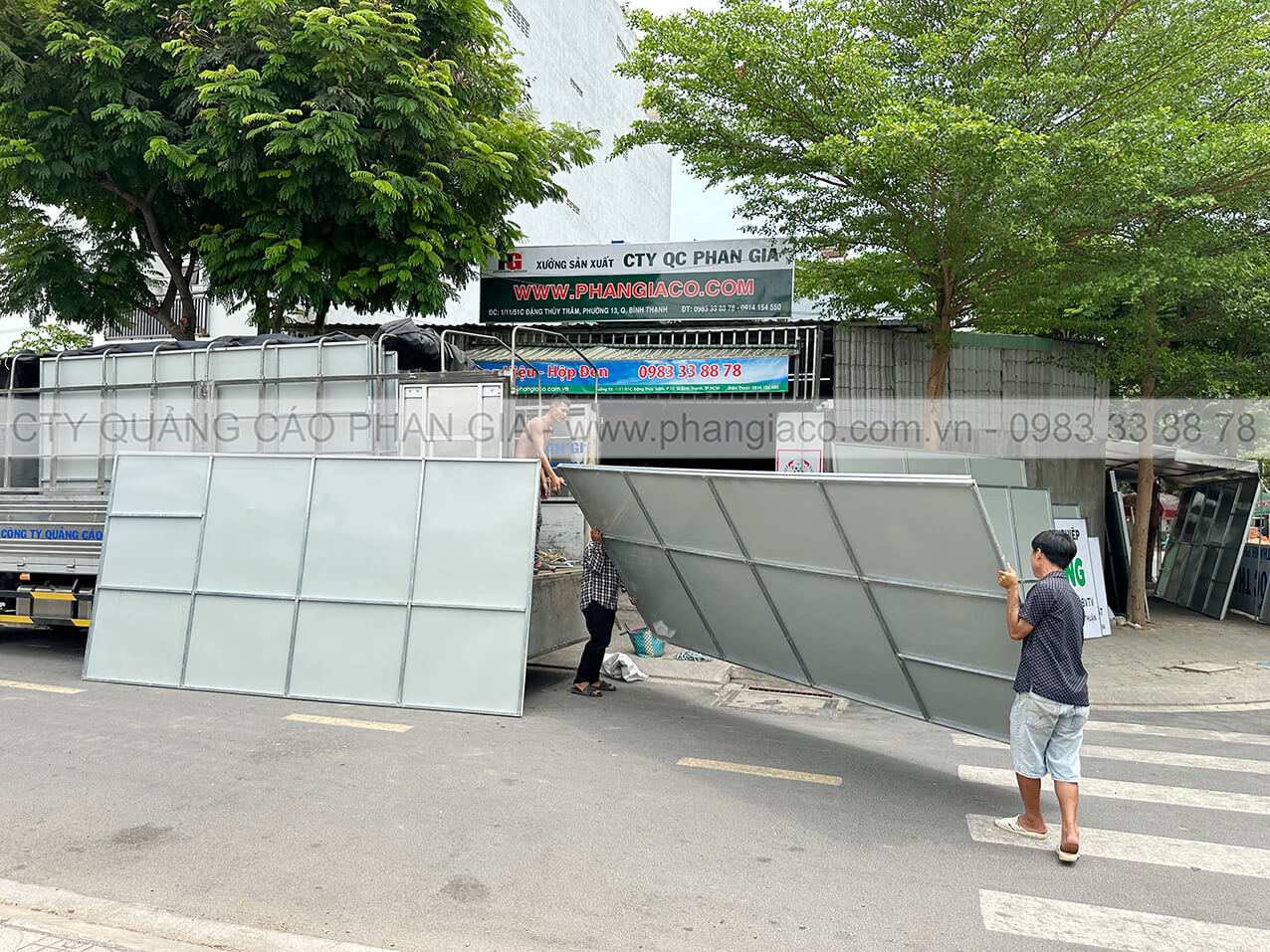 Sản xuất khung bảng hiệu quảng cáo với chất liệu tôn dán decal tại xưởng Phan Gia